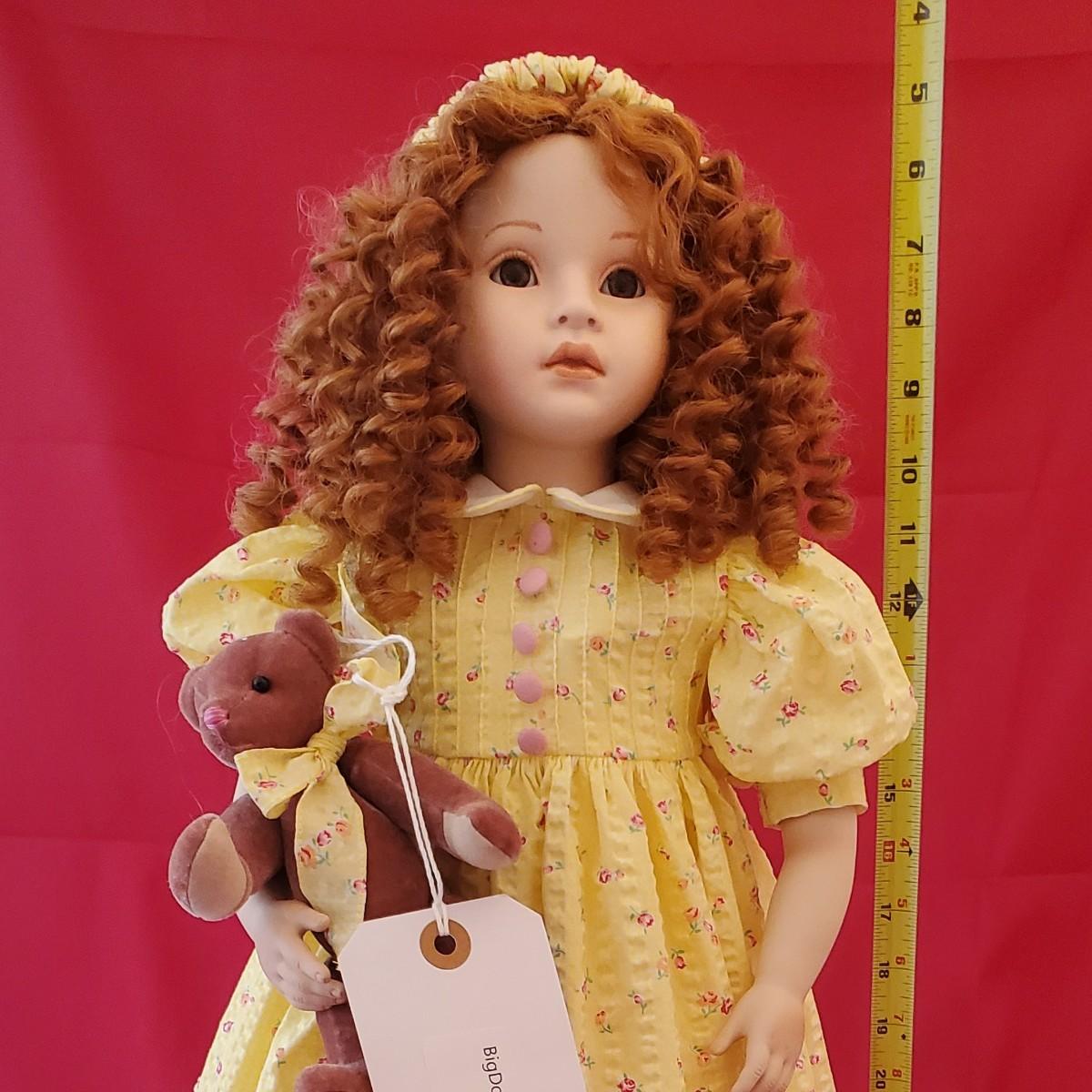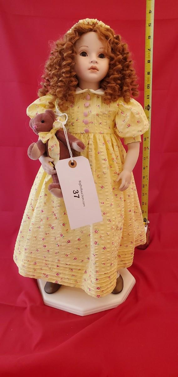 Doll Named "Ginger" By Artist Pauline in great condition Red Curly Hair and Yellow Dress w Bear