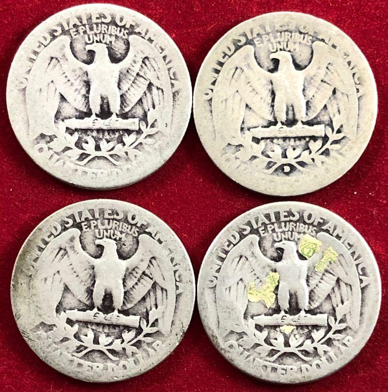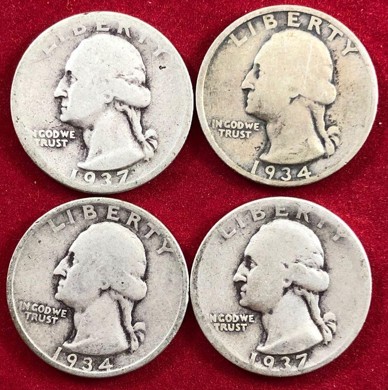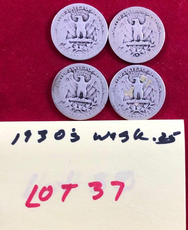 Lot #37- 4 1930's Washington Quarters $2 Face 90% silver