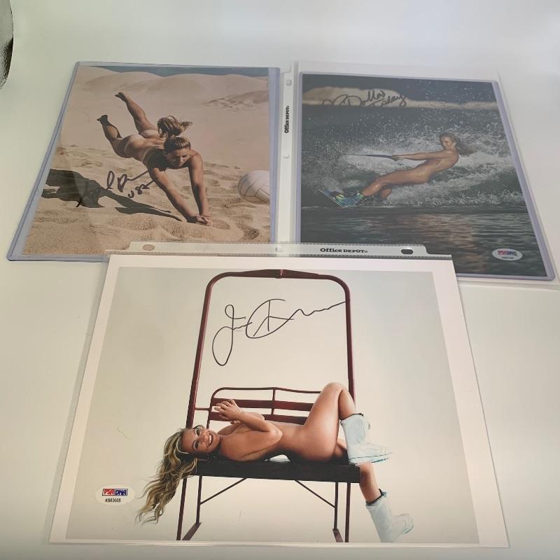 These athletes got a bit adventurous in their photos by taking off their clothes! All photos have COAs and include April Ross (volleyball), Dallas Friday (wakeboarding) and Jamie Anderson (snowboarding)