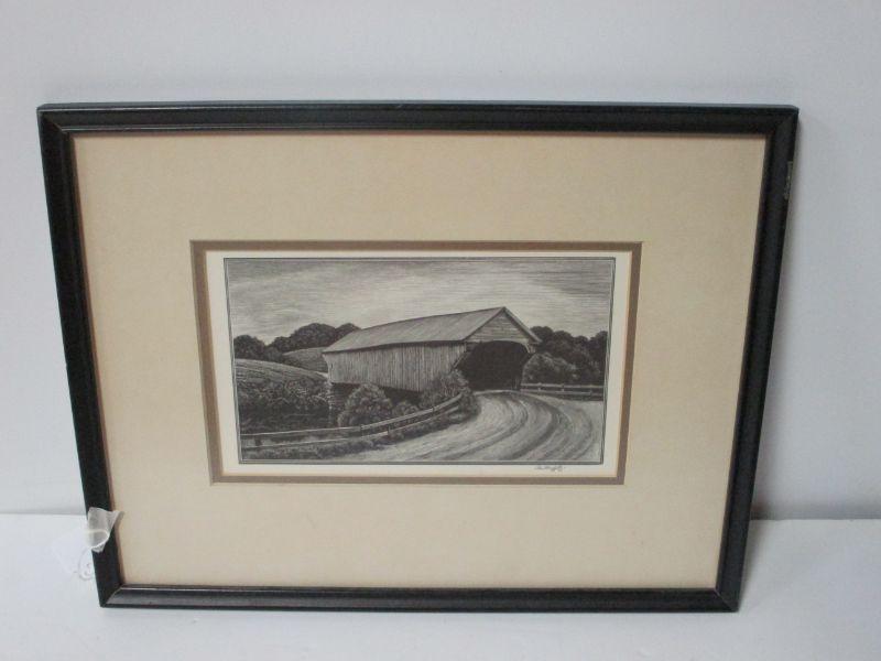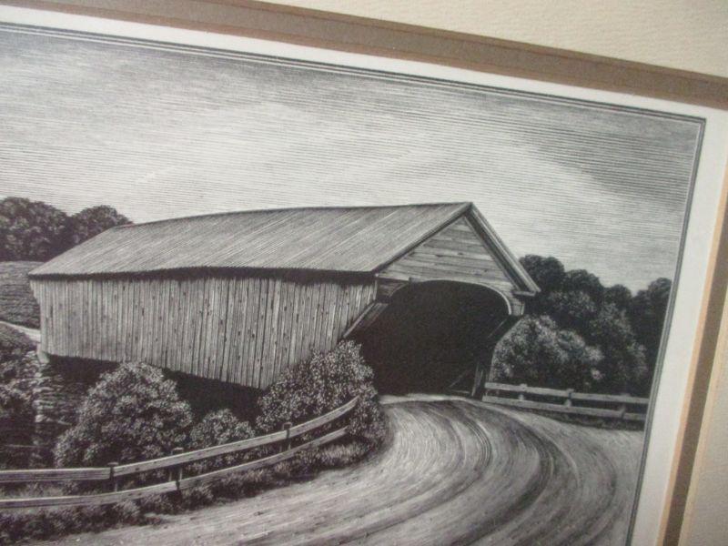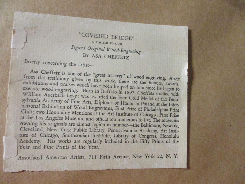 Lot 37 - Signed Original Wood-Engraving "Covered Bridge" ASA Cheffetz
