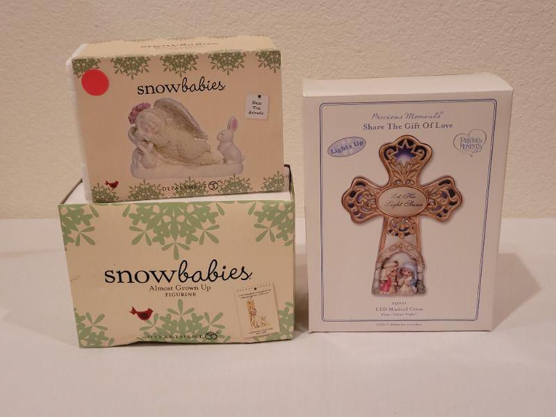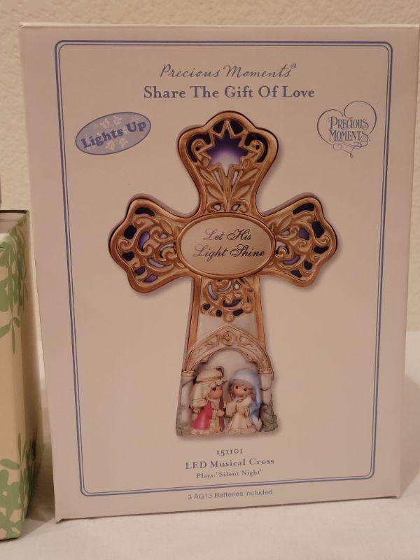 Lot 37: Assorted Christmas Precious Moments LED Cross and Dept. 56 Deco