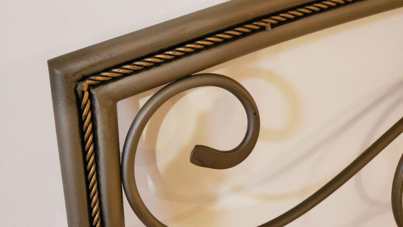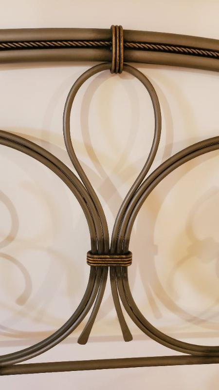 Metal headboard for queen bed, and bed frame. Bring help to move from basement.