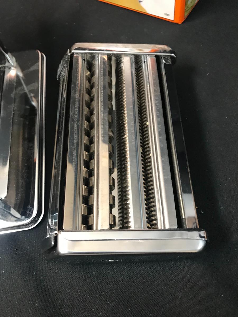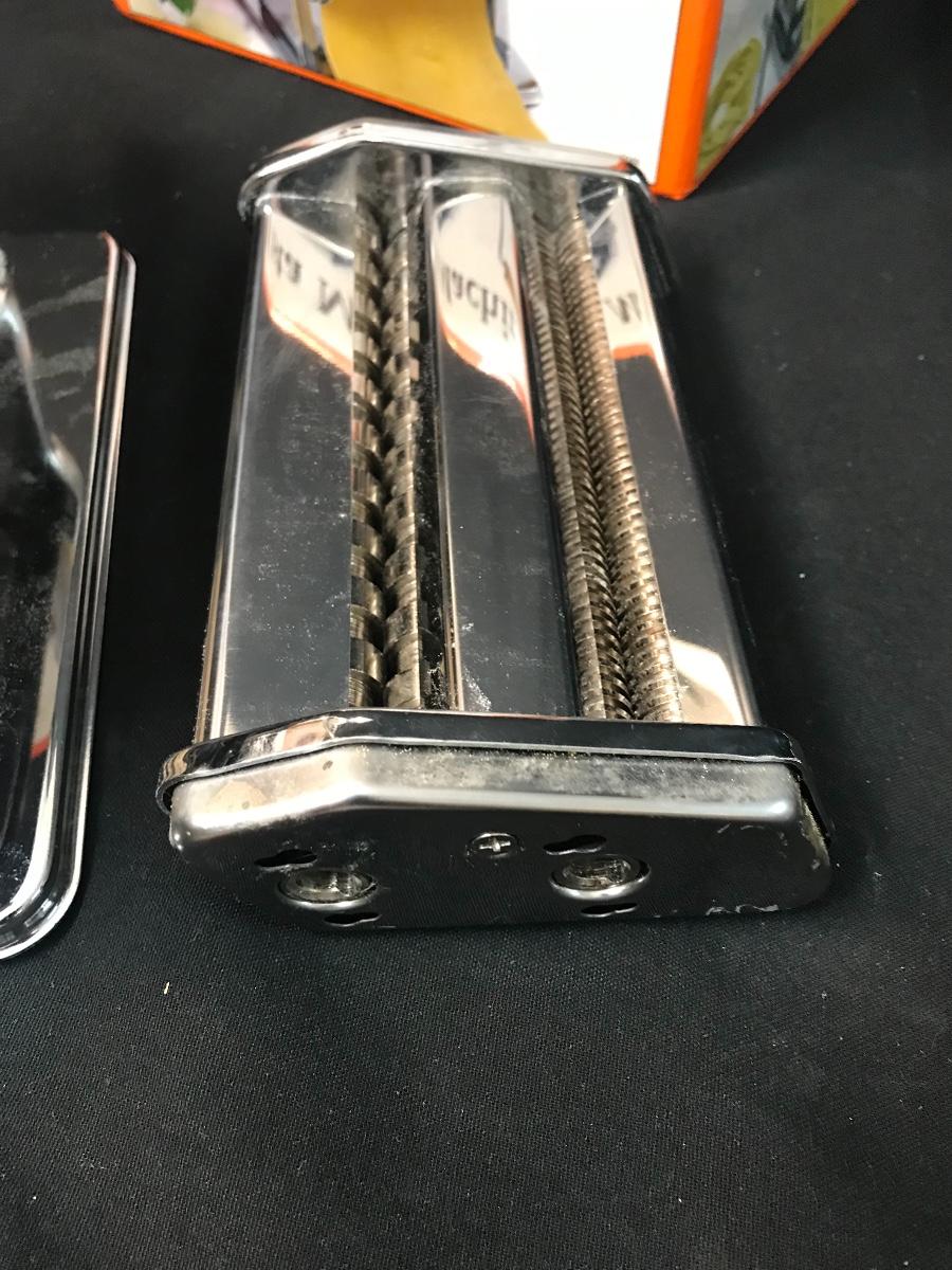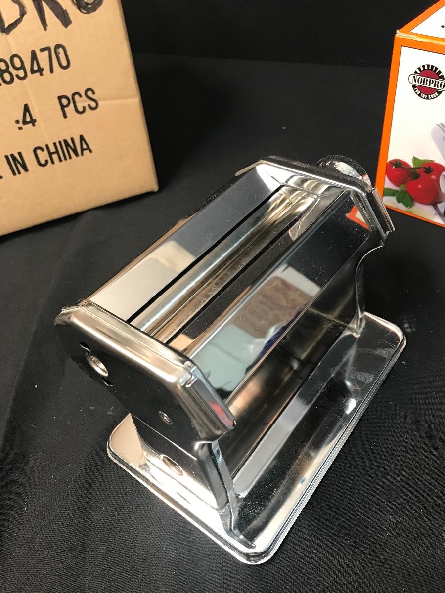 Stainless Steel Norpro Pasta Maker. Appears to be lightly used in overall good condition. Please see all pictures as they are the best representation of the items. The pictures show condition, measurements if taken, and what is included in the lot. Due to the large amount that we photograph and the time frame, we are not always able to take measurements. All items unless noted, are pre-owned and have been used. If you purchased furniture, you must bring help. We do not allow one person to carry large furniture out on their own. Bring help, tools and a truck for the safety of our client’s homes, and your personal safety. Company policy. Thank you.
