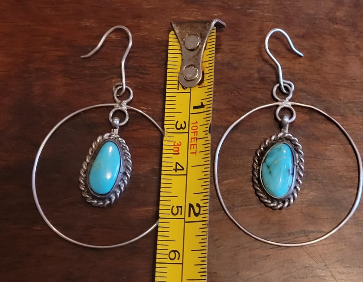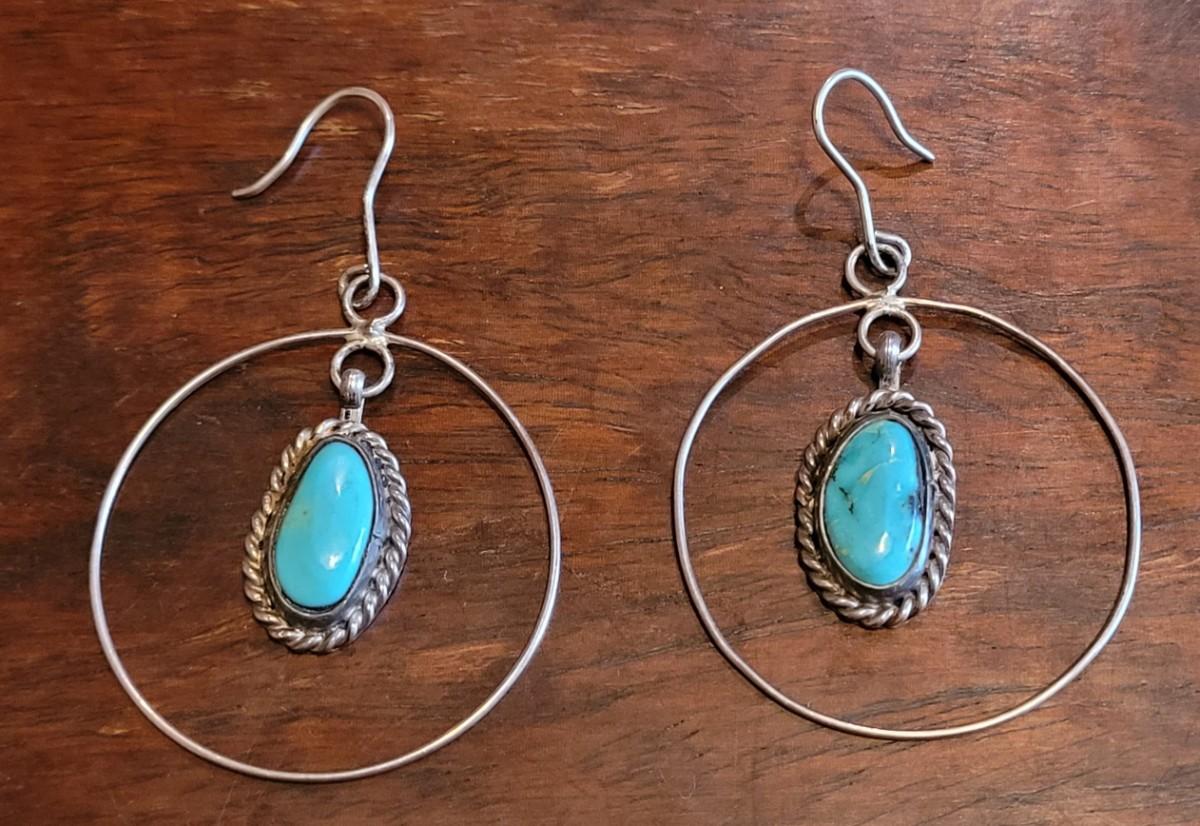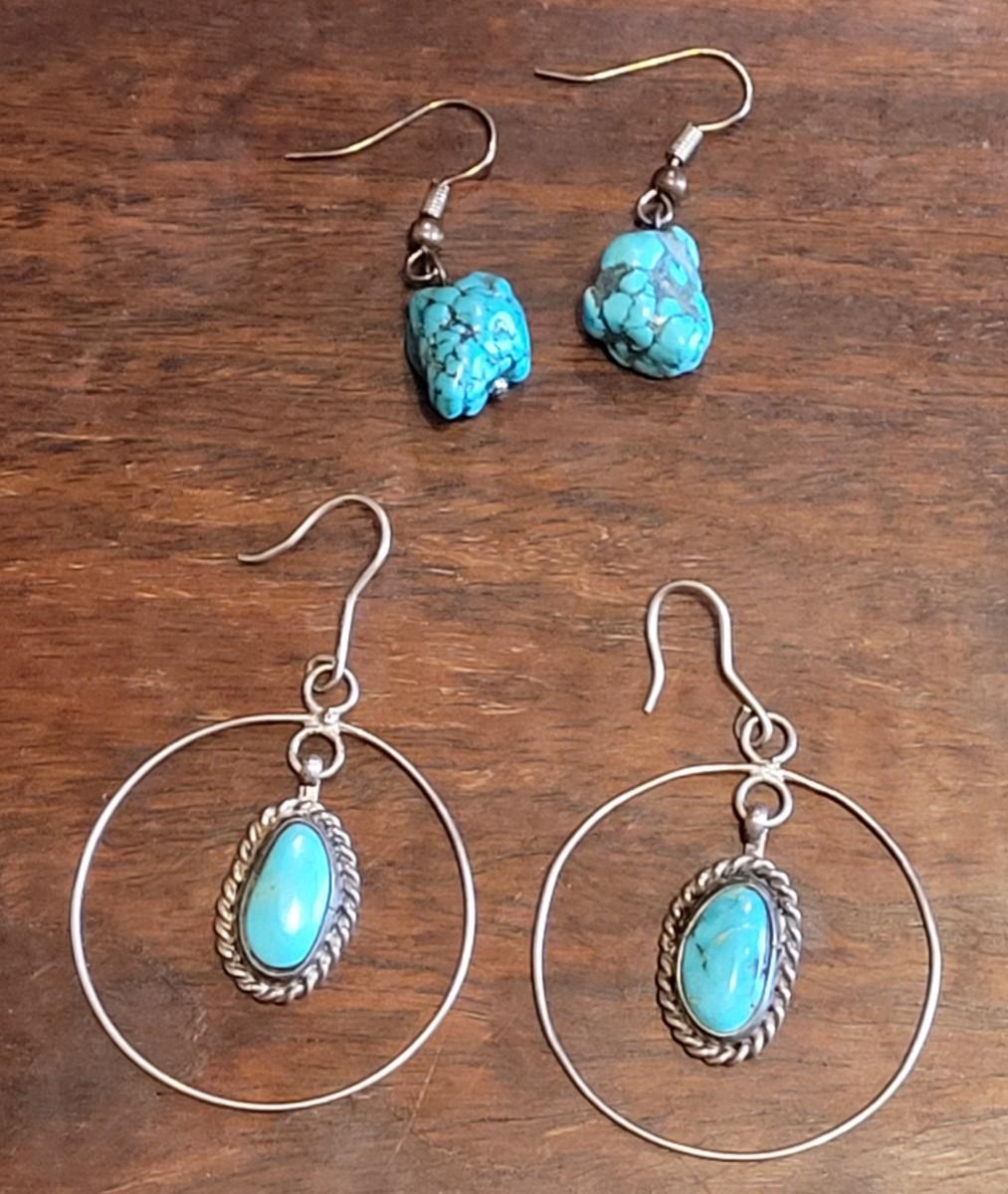 Lot 37: Old Pawn Hoops with Turquoise and Turquoise Nugget Earrings
