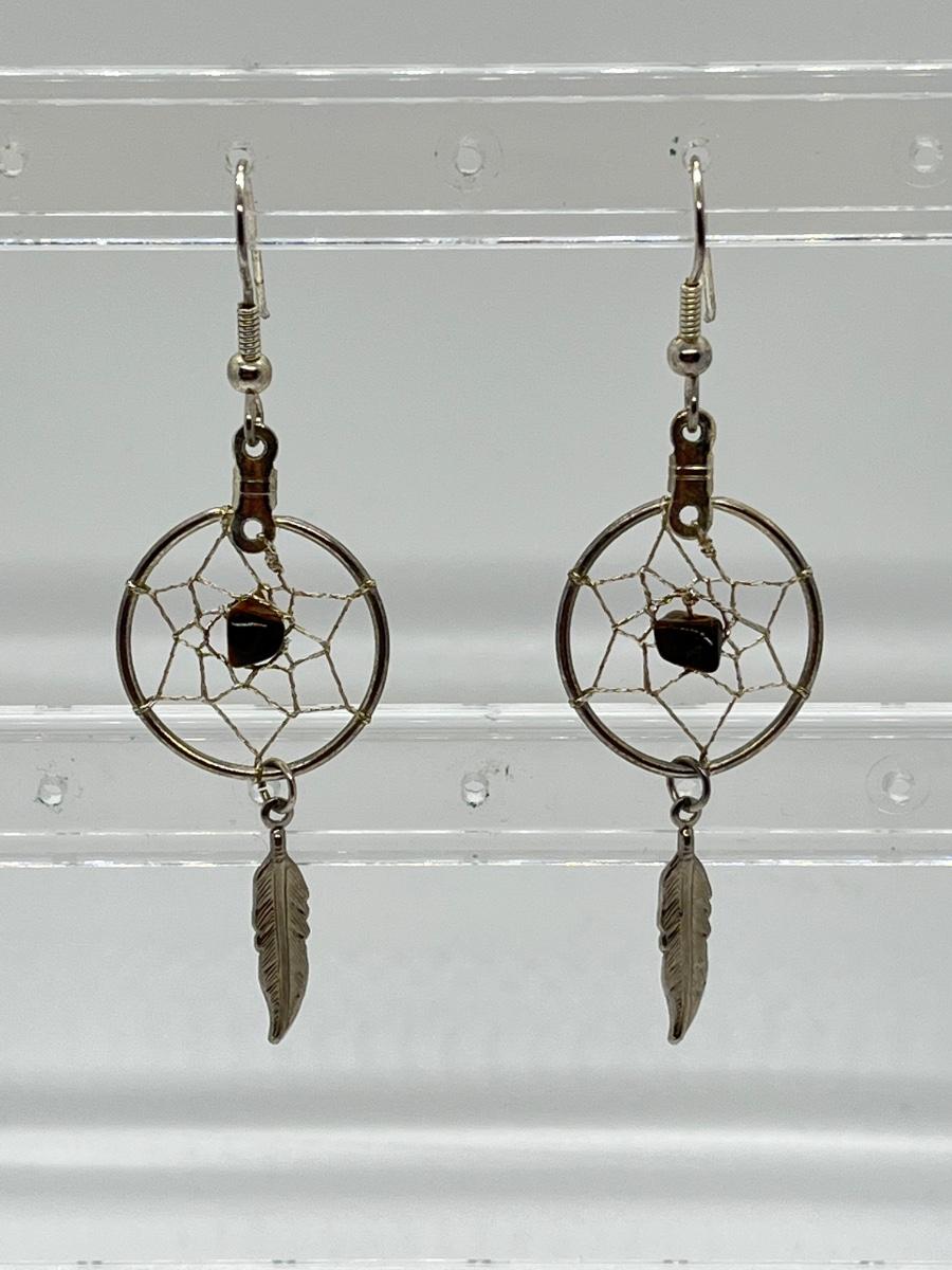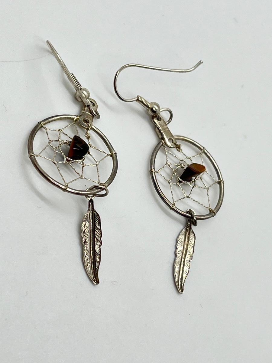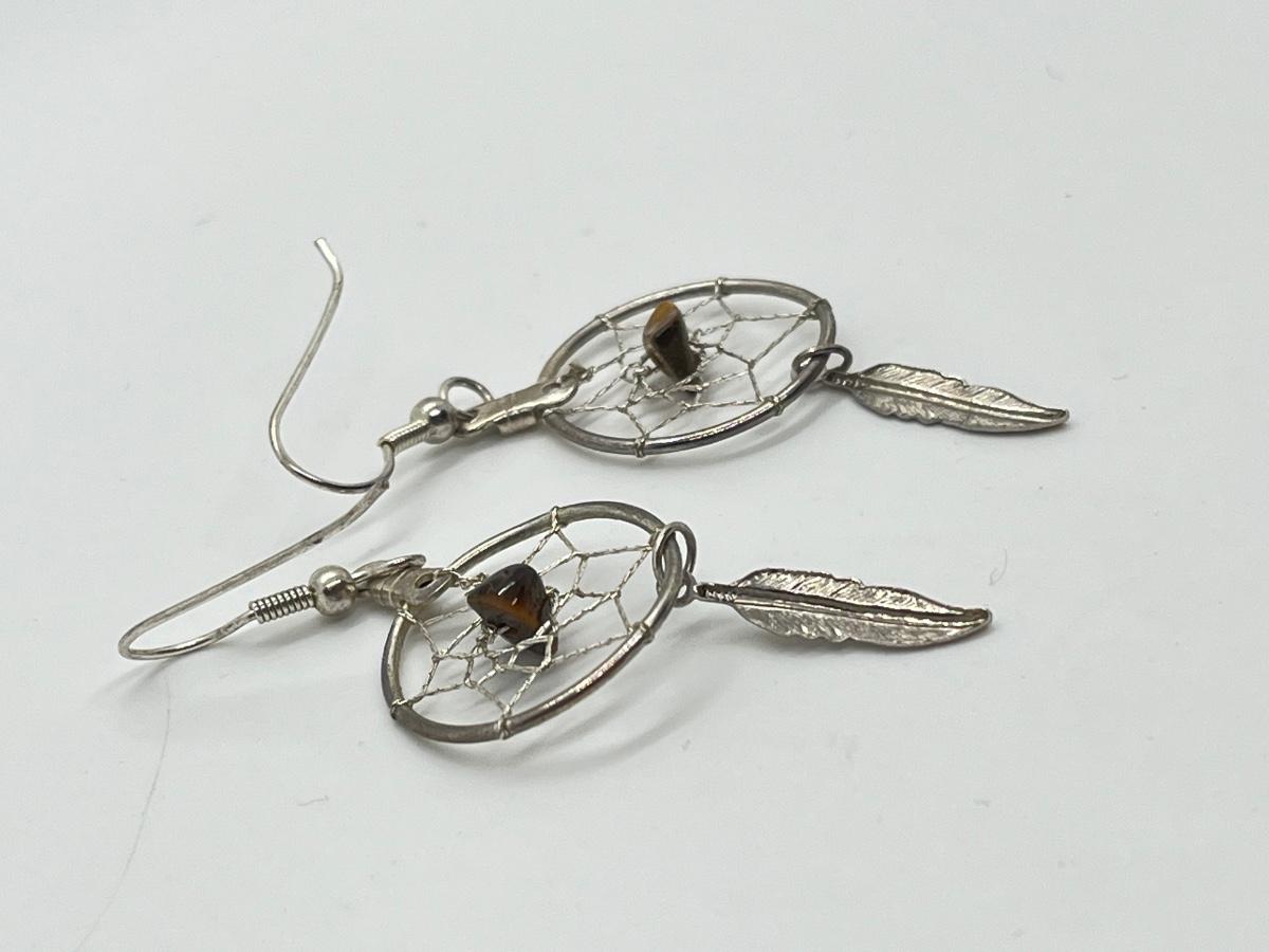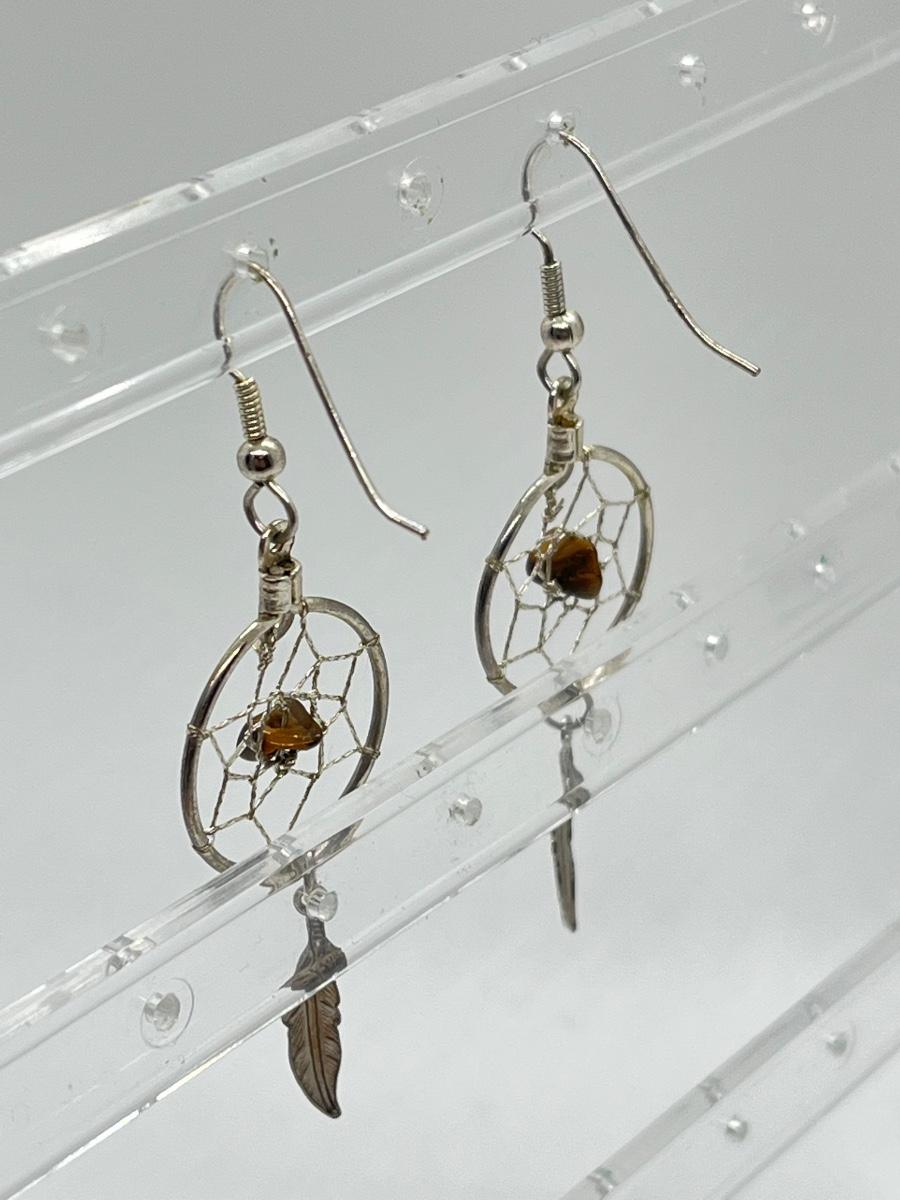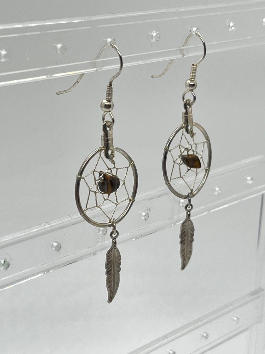 LOT 37: Dreamcatcher Necklace (22") and Pierced Earrings - Silver Beads & Tiger's Eye