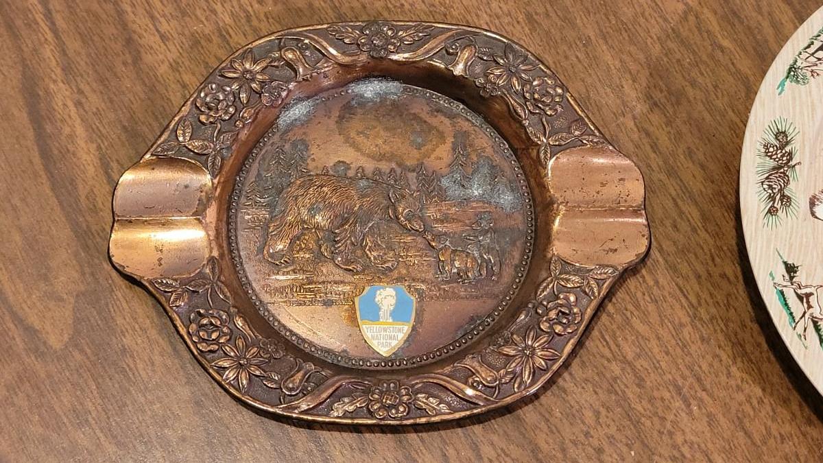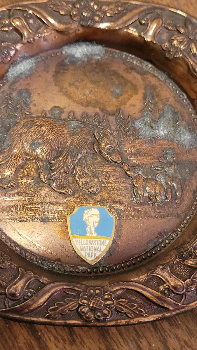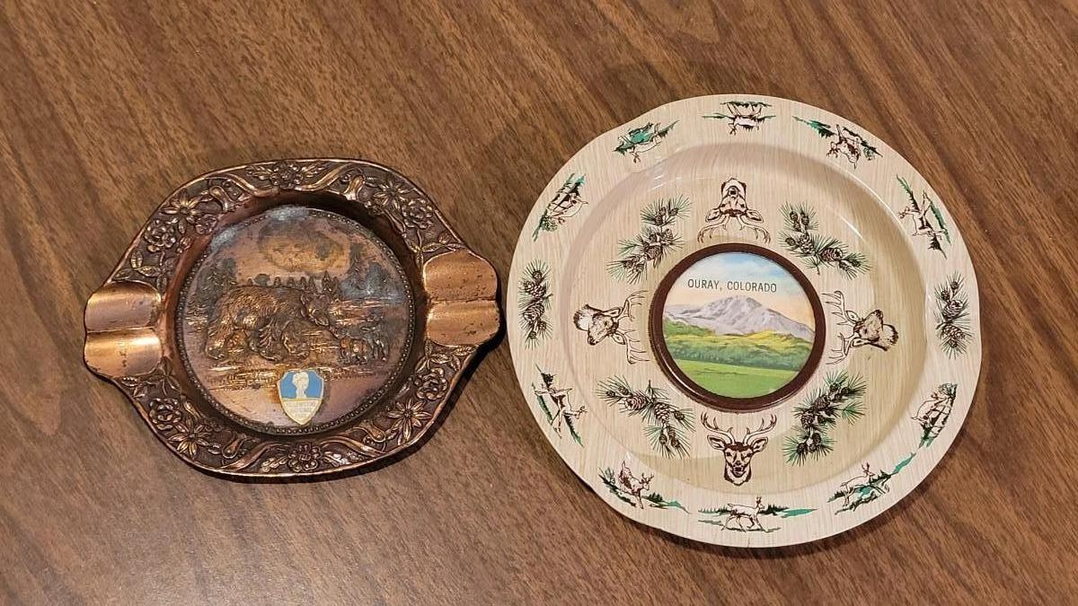 Lot 37: Vintage Copper Yellowstone Ashtray and Ouray, Colorado Metal Ashtray