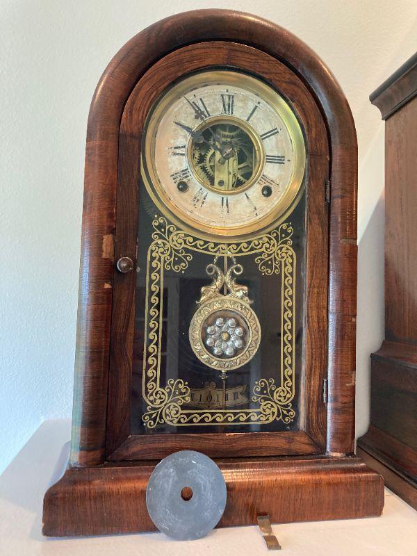 Lot #37 Ansonia 8 day round top shelf clock