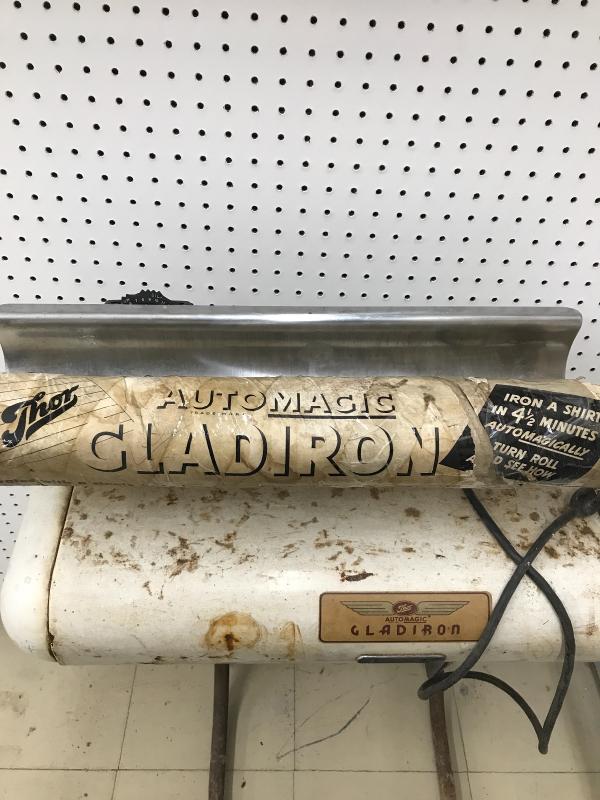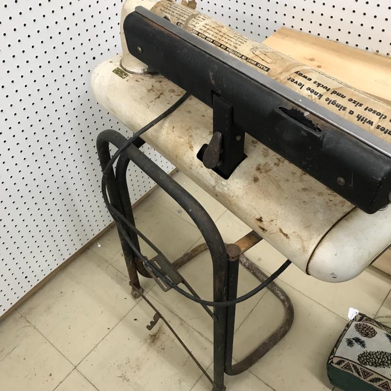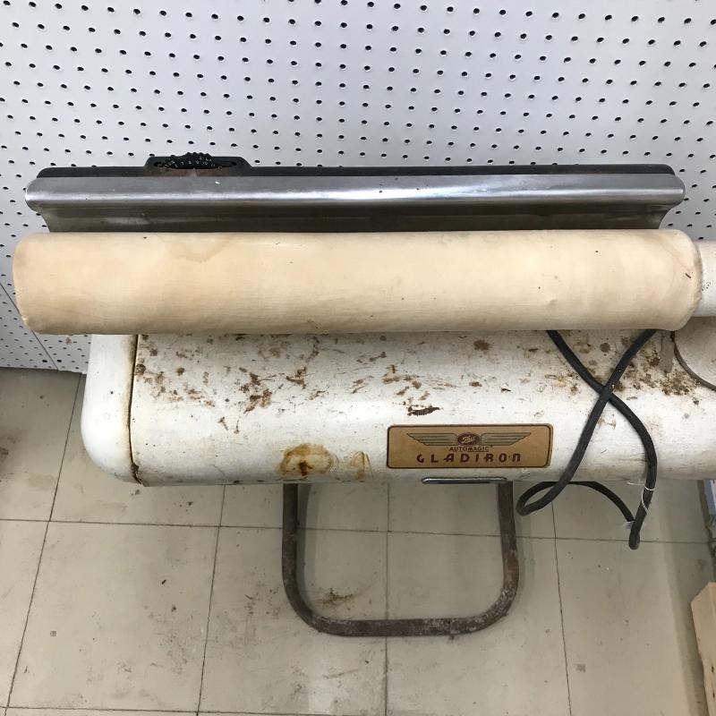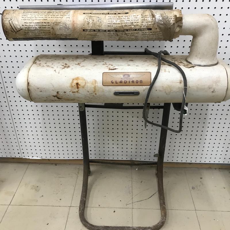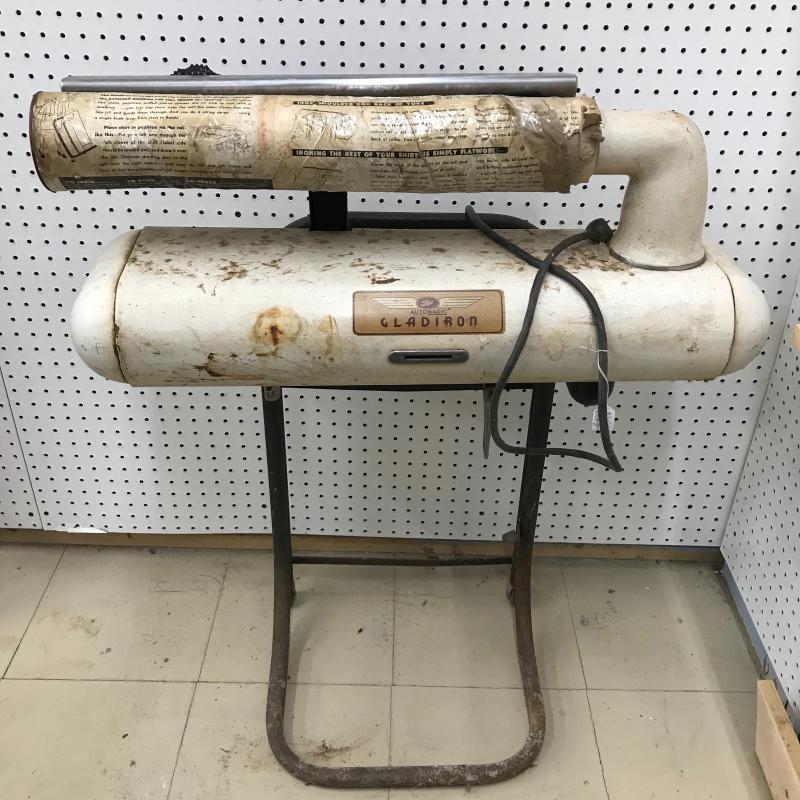 Vintage freestanding unit. Appears to have all parts, including protective shield for sleeve pad. Cannot guarantee functionality. Unit measures 28.5” x 14” x 36” and is available for local pick up only in Maggie Valley, NC.