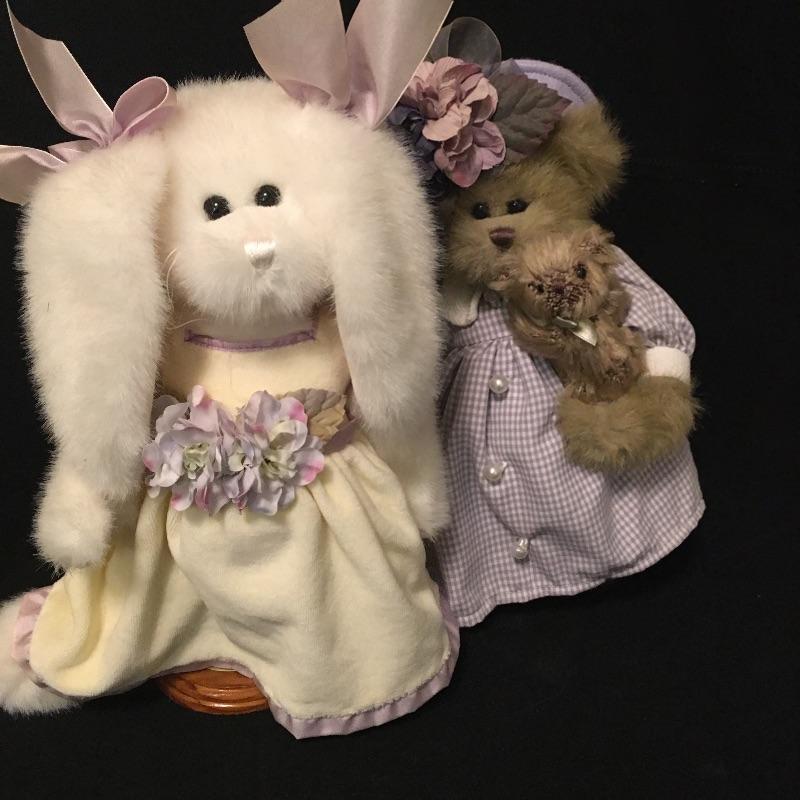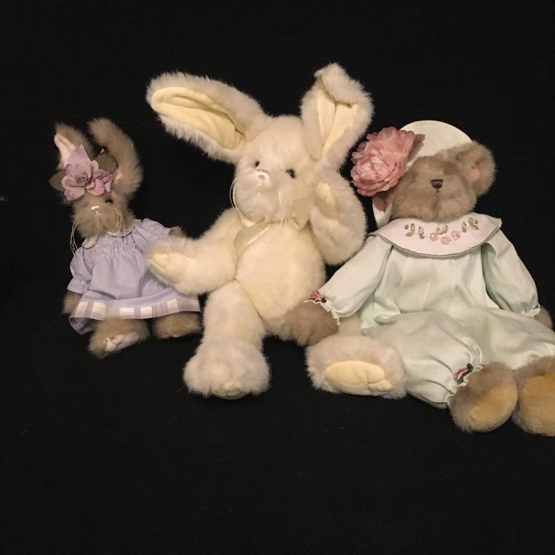 Twelve Bearington Collection bears and rabbits. Four have stands and all have the Bearington Collection tag. Largest animal measures 22” tall x 8” wide.