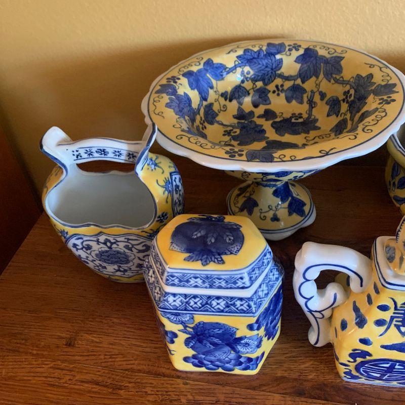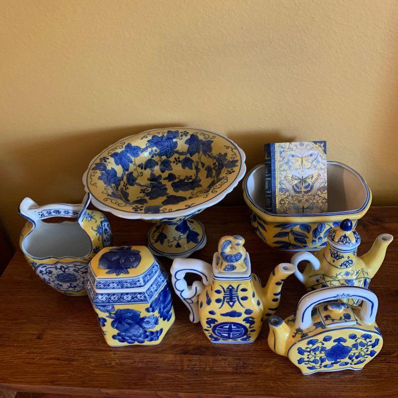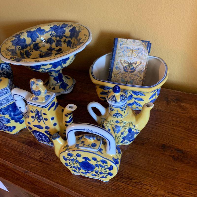 BLUE AND YELLOW CERAMIC ITEMS