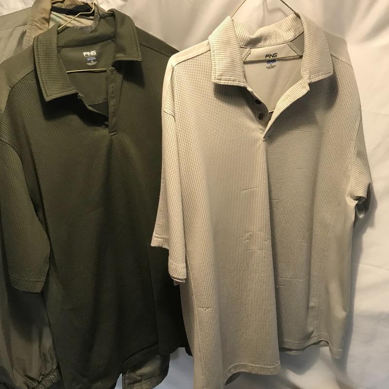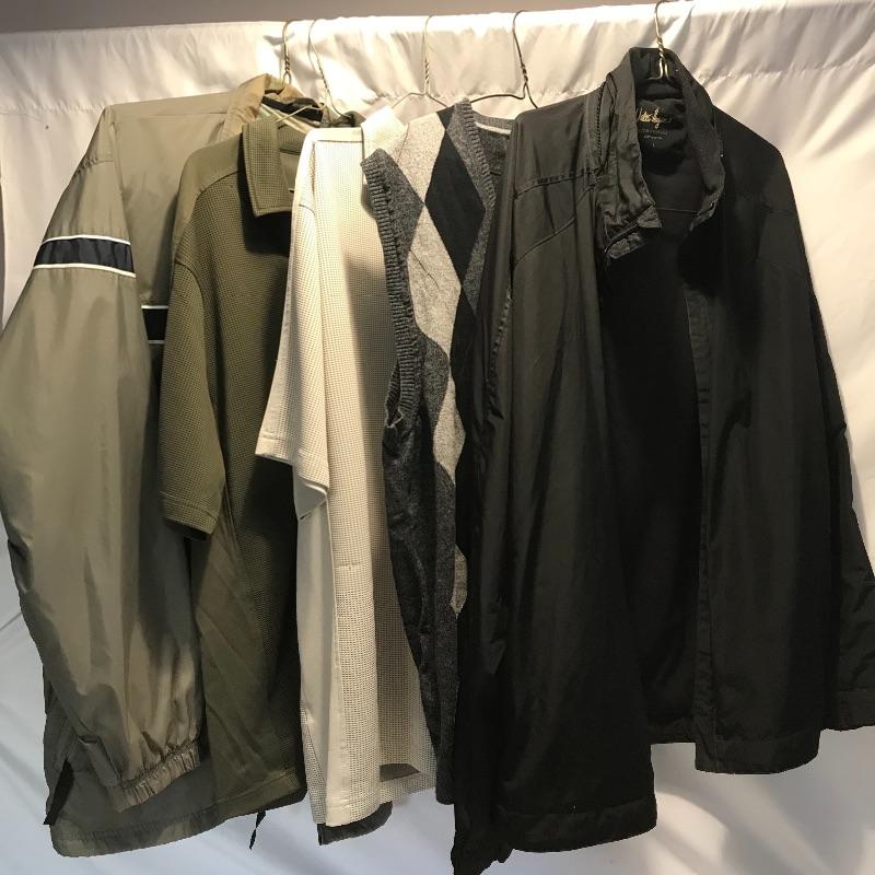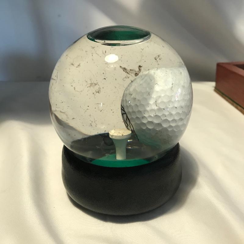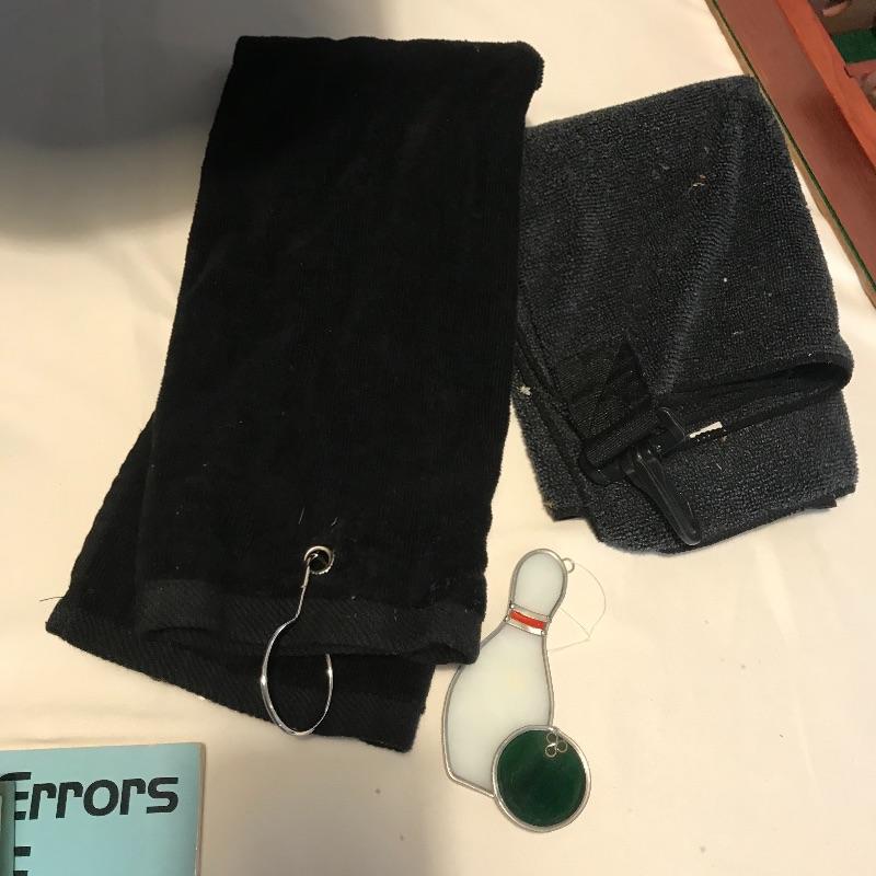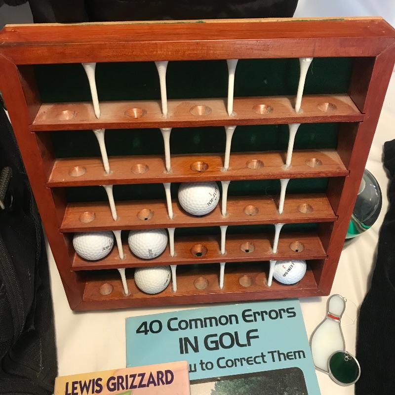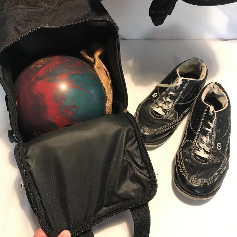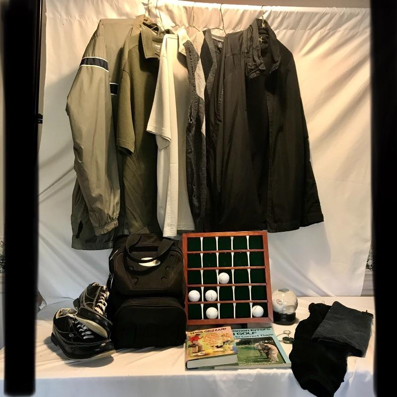 This is a great lot for the sport lover! Two Ping polos, Nike and Walter Hagen Golf jackets and a Joseph Abboud vest (see images for size and condition). Lot also includes a wooden golf ball display, two books. Lot features a bowling bag with some well loved shoes, bowing gloves, and a ball named “The Thing”! Lastly a stained glass bowling ornament and a golf ball globe game sure to either ease or add to your stress as you try to place the ball on the tee. Globe has some sediment in the water, but that doesn’t change the game! See photos. Local pick up only.