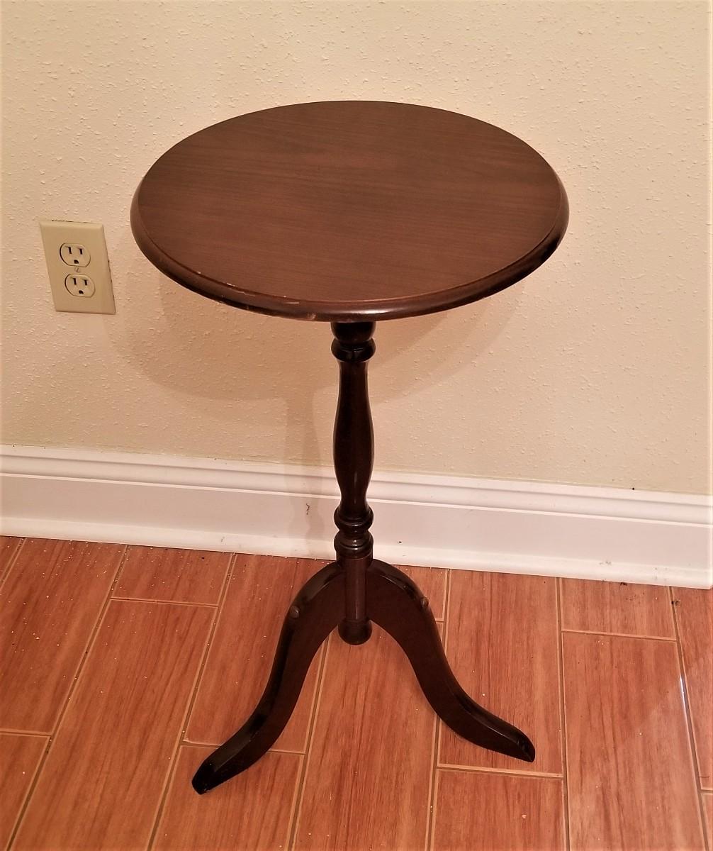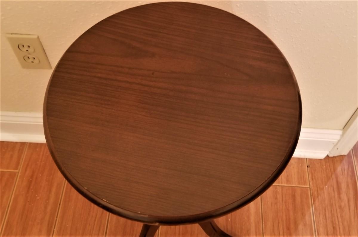 Decorative 3 leg table - no maker noted - top in good condition. Some wear to the edge, as shown.