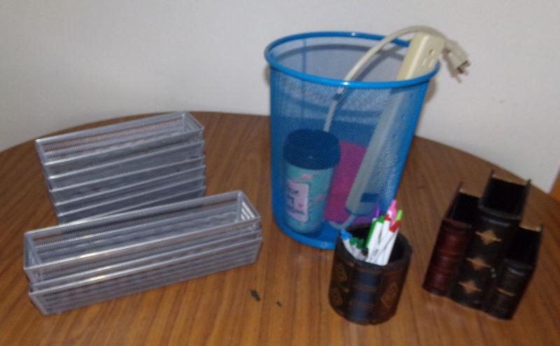 SMALL METAL LAMP, PAPER HOLDER, BIN, WIRE WASTE BASKETS, METAL MESH ORGANIZERS, MORE