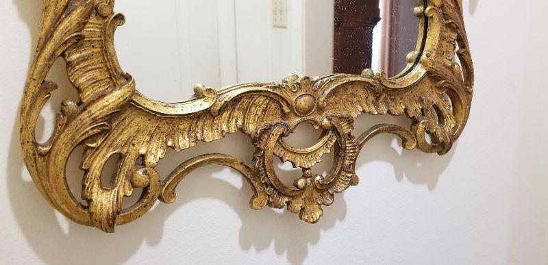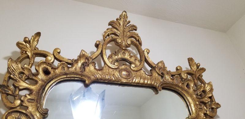 Absolutely gorgeous vintage gilded wall mirror - thick wooden frame. 47" tall, 26" wide. It's a real beauty. Photos do not do it justice.
