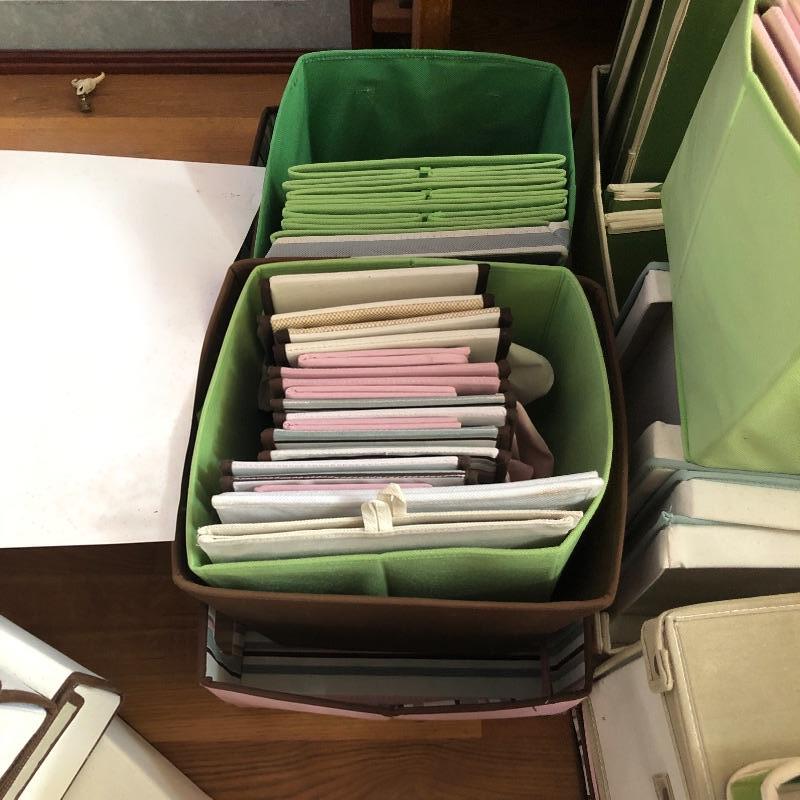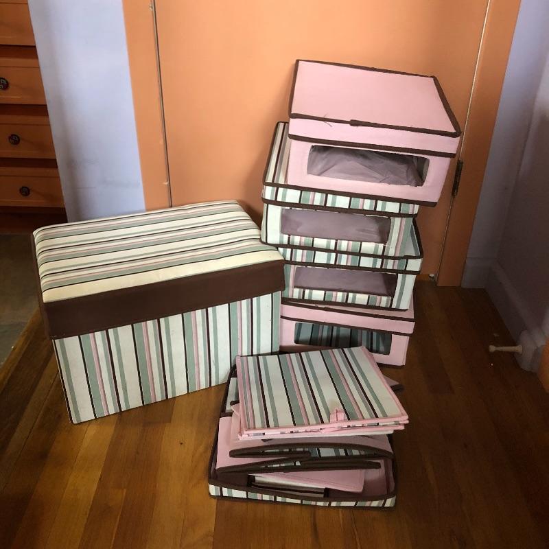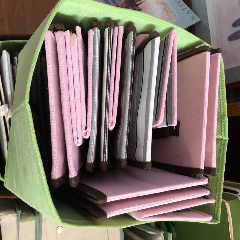 You won’t ever run out of storage solutions with this giant lot of foldable, fabric boxes. From small to large and in pinks, greens, browns and more, they are attractive as well as useful. They fold flat so they wont take up much room when not in use.