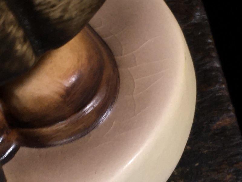 This 3 Hummel lot contains Hummel #374 “Lost Stocking”, #11/0 “Merry Weather”, and “350 “On Holiday”. “Lost Stocking” is a TMK 5 and has minimal crazy on its base, as shown in the pictures. “Merry Weather” is a TMK 5 and is in mint condition with no noticeable crazing. “On Holiday” is a TMK 6 and has minimal crazing on its base.