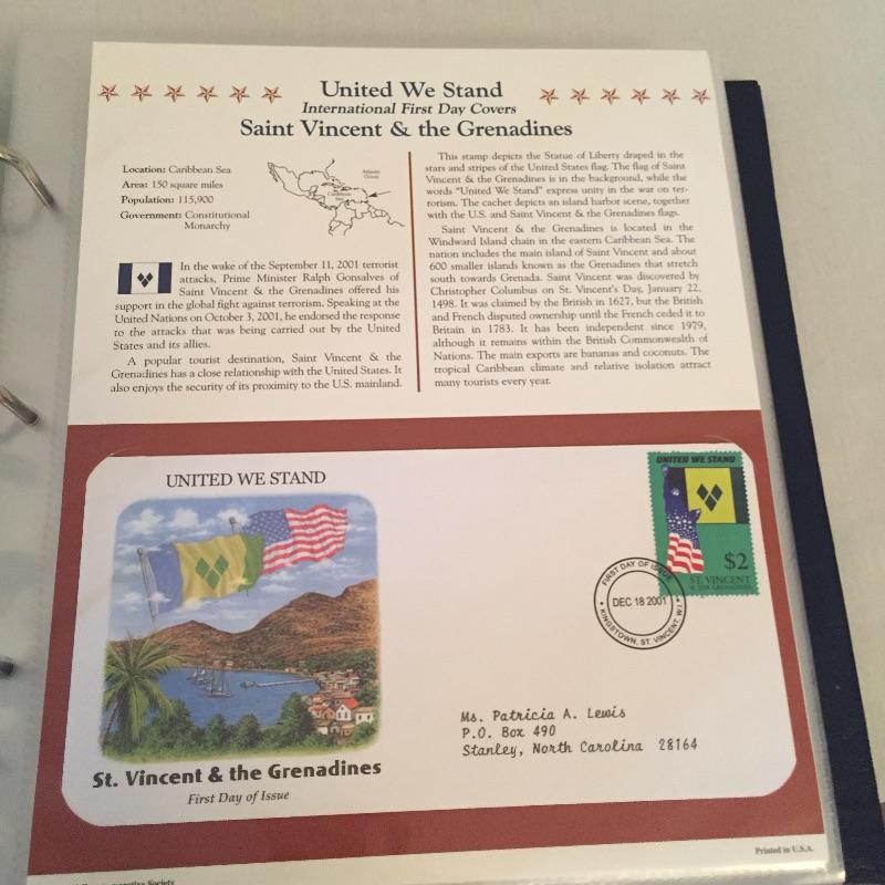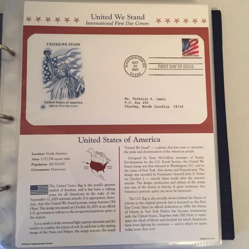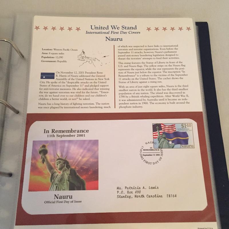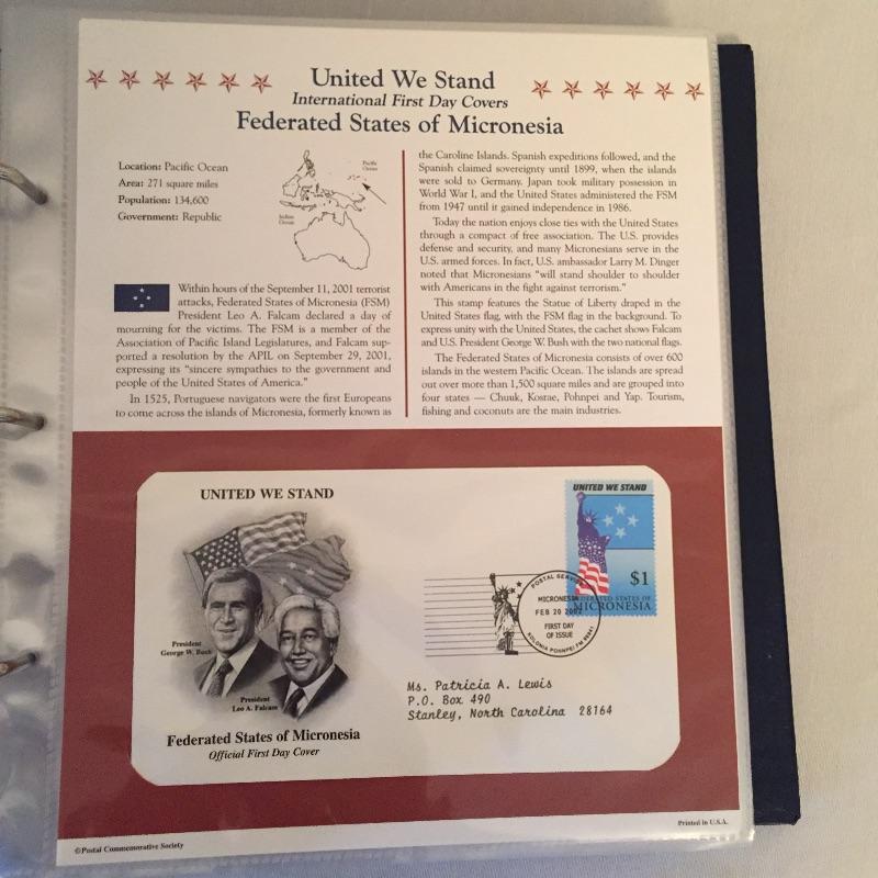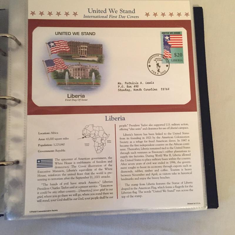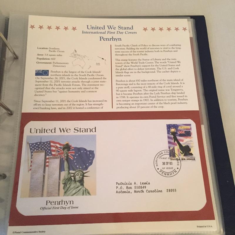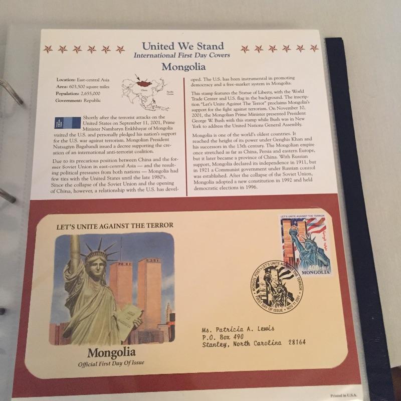 Fifty International first day covers. A collection of first day covers featuring international stamp tributes to world unity in the defense of freedom. Not all covers are pictured.