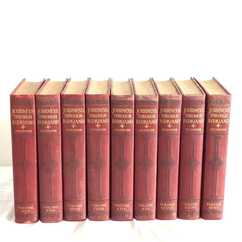 9 Volume Journeys book set with rich red color and distinctively designed covers.