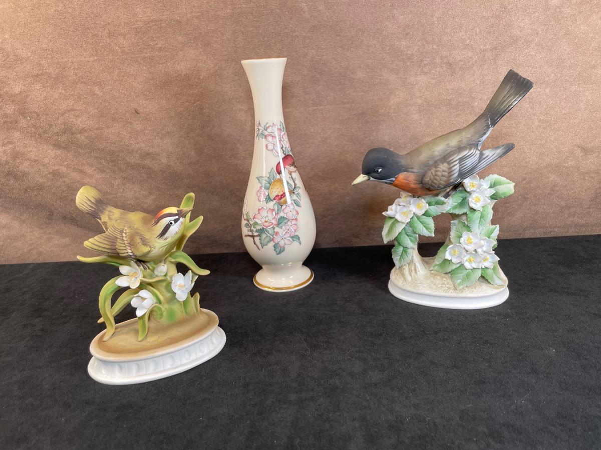 Lot 37. Lenox Vase and Two Porcelain Birds