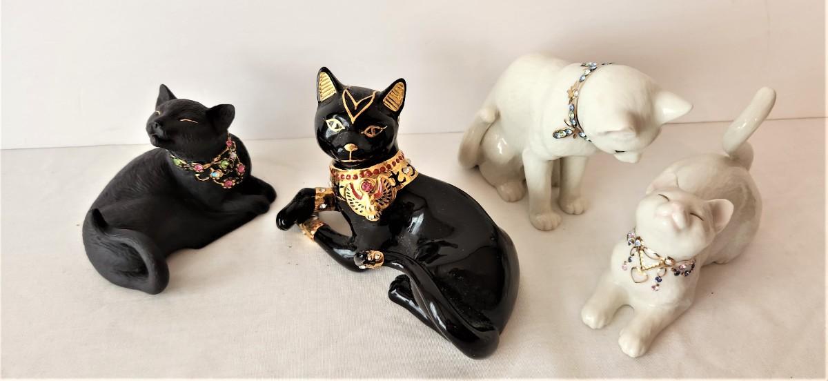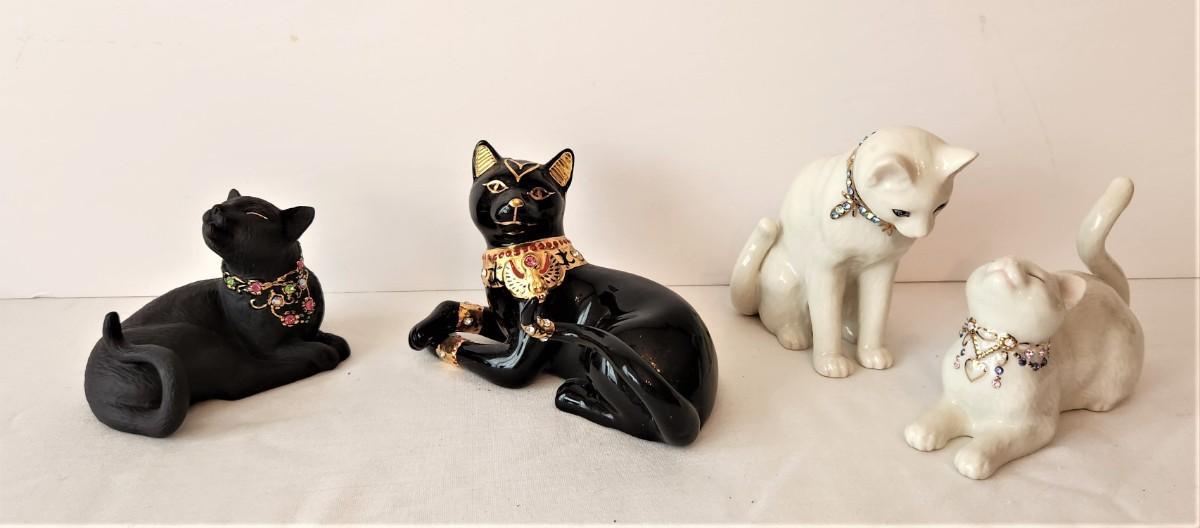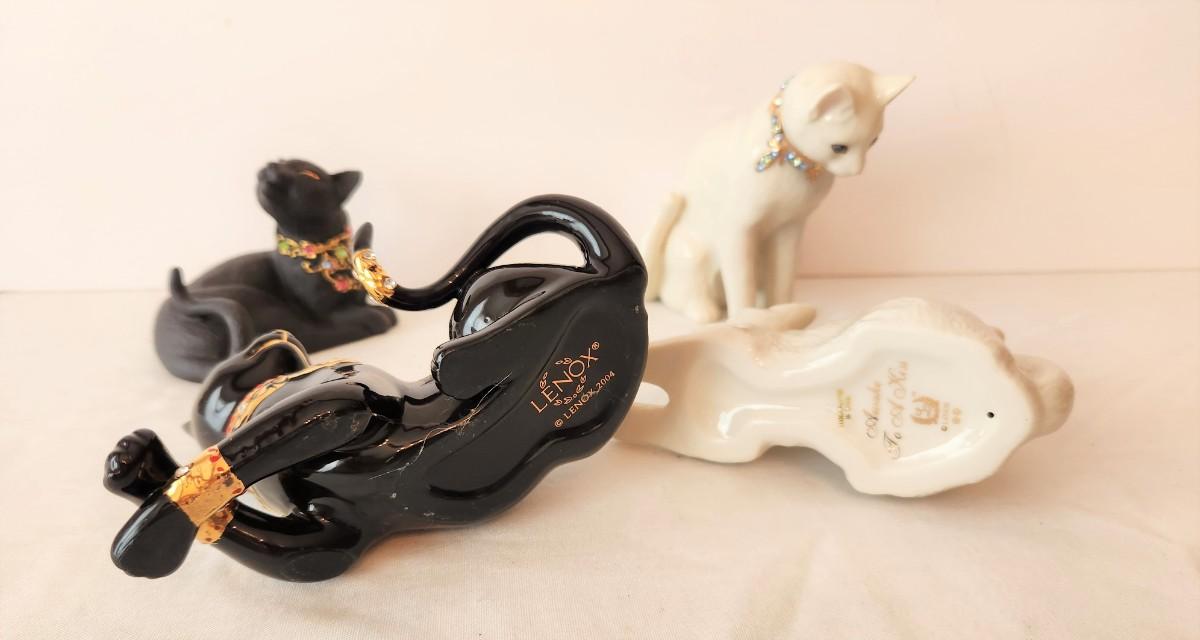 Lot of 4 porcelain LENOX cat figures, dated 2004. 2 white/2 black - good condition.