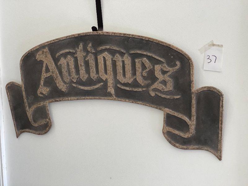 Lot 37 NWT Antiques Banner Metal Sign 39"