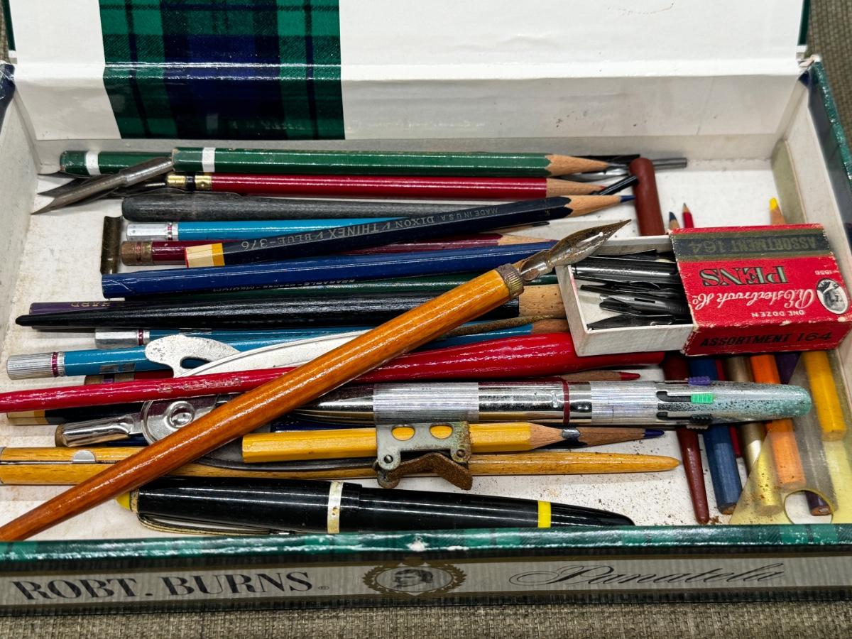 LOT 37 - Vintage Office Supplies Cigar Box Lot - Pencils / Templates / Nibs