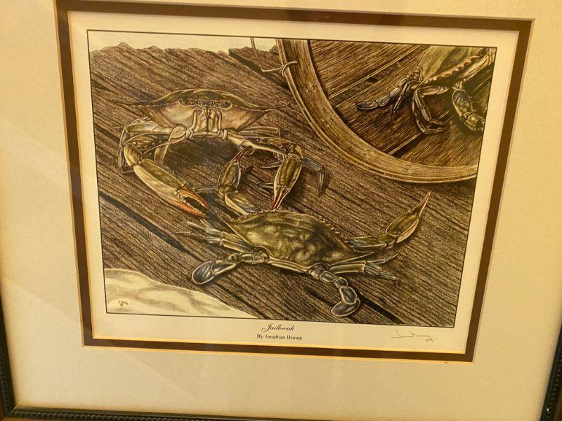 Lot #37 Set of 3 Framed Johnathan Brown Crab Prints