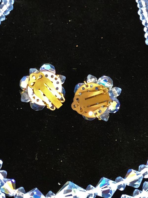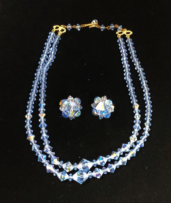 Very pretty, light blue (sky blue) glass bead choker and clip-on earring set. Excellent condition.
