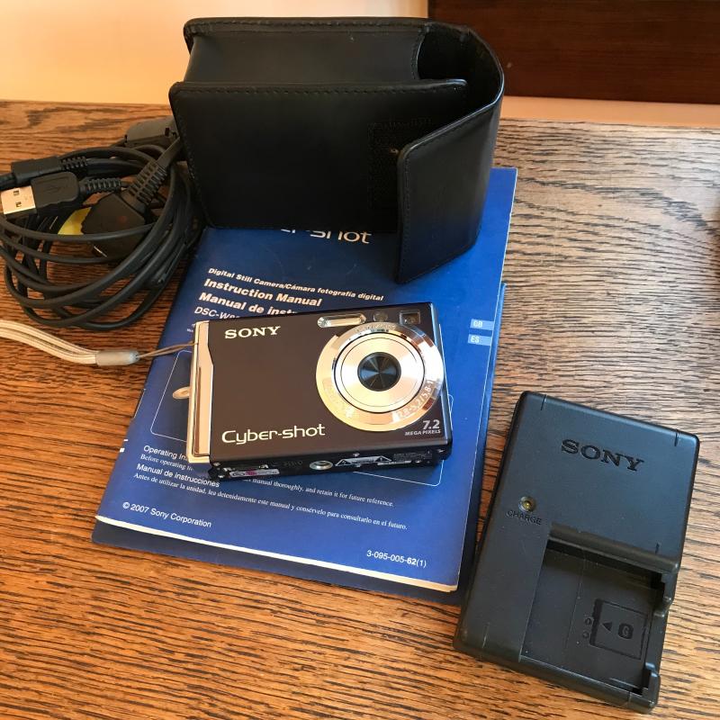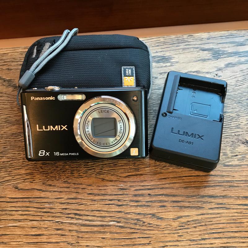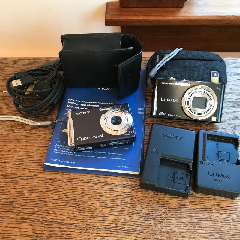 Sony Cybershot camera with battery charger, case and cord for uploading. Panasonic LUMIX camera with battery charger and case. Lot is available for shipping or local pick up in Asheville, NC.