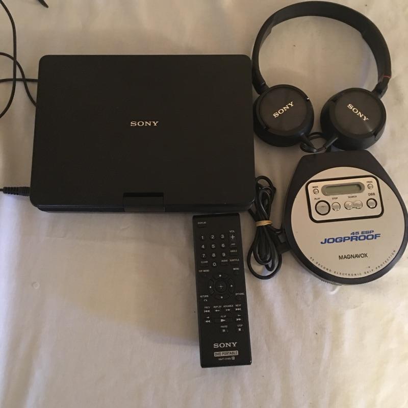 This lot includes a Sony portable DVD player and a small Magnavox CD player with Sony headphones. DVD player powered on when tested and CD player was not tested as it has no batteries.