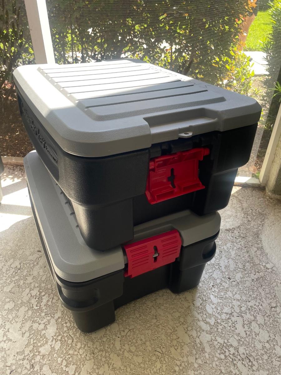 Lot 37. Two Large Rubbermaid Locking Storage Bins