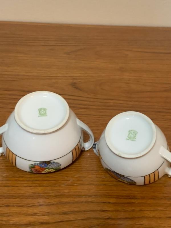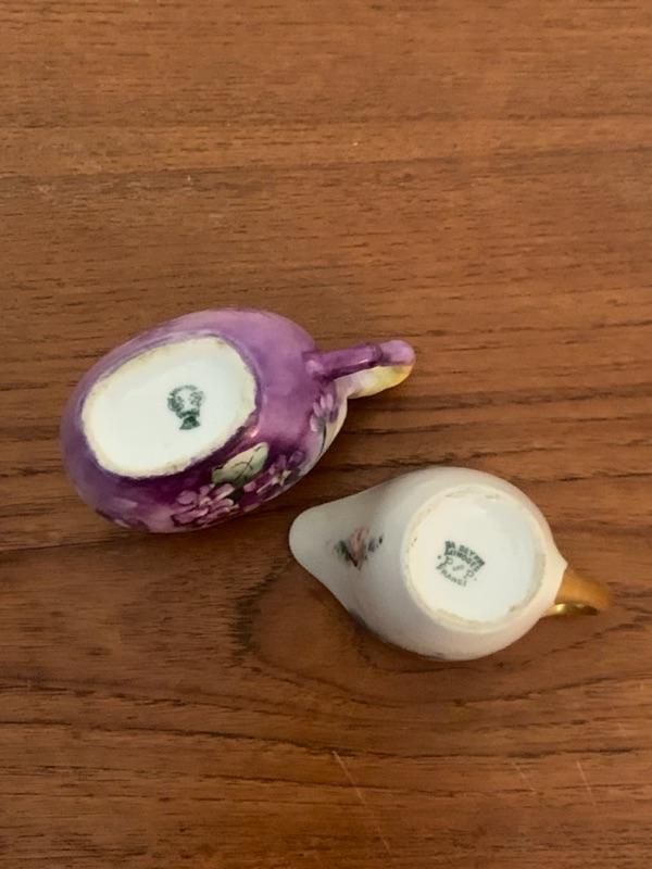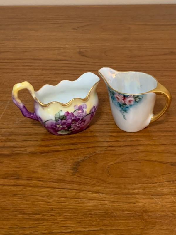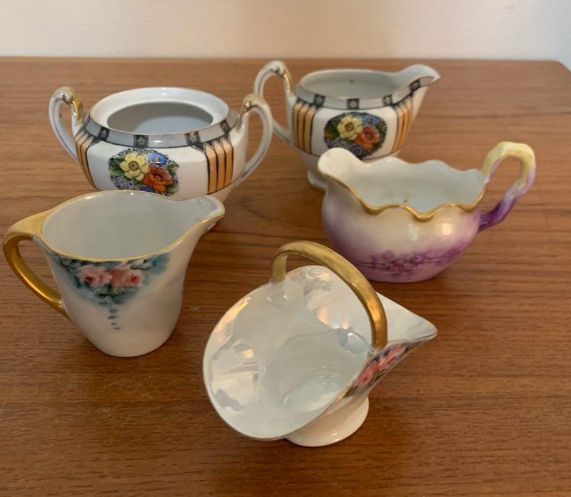 Vintage Noritake hand painted sugar (no lid) and creamer, Noritake Nippon basket, Le Seynie Limoges P and P creamer and Austrian creamer (unable to make out backstamp). Noted repair on basket handles. All other pieces appear in very good - excellent condition with typical wear.