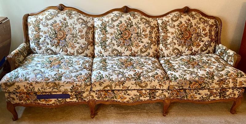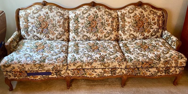 Broyhill Premier floral couch with wooden trim 84Lx33Wx31H MHW.