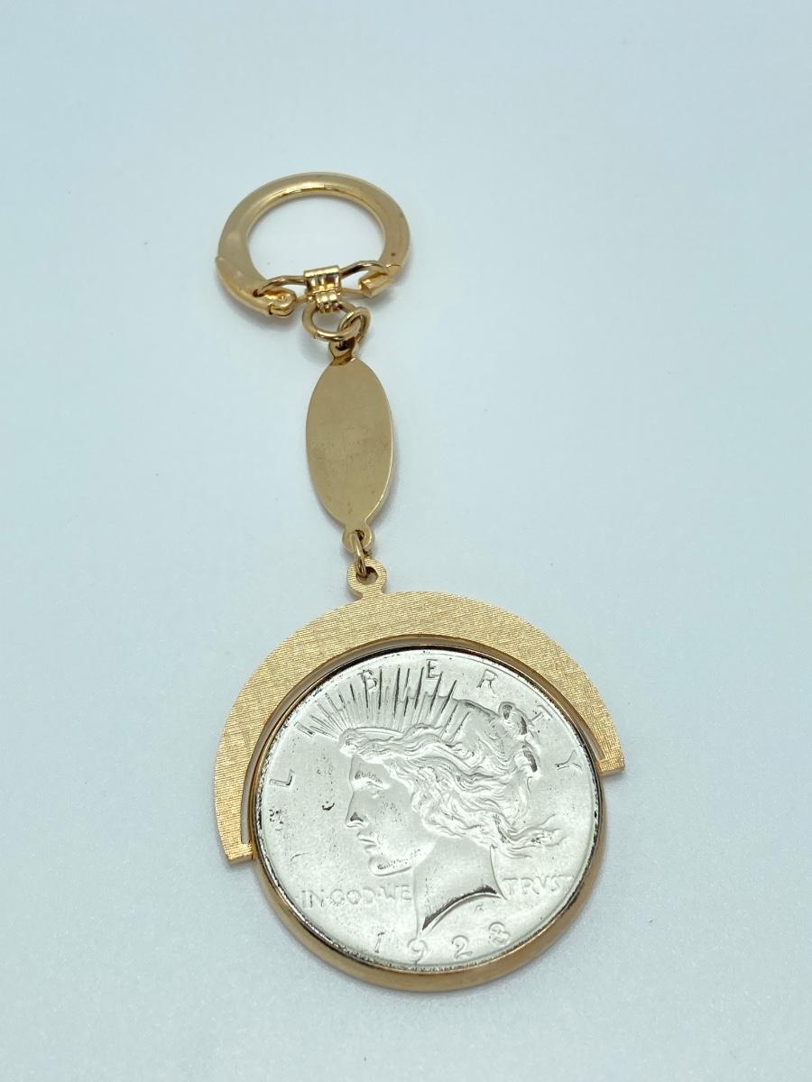 LOT 370: 1923 Silver Peace Dollar Coin with Gold Tone Key Chain