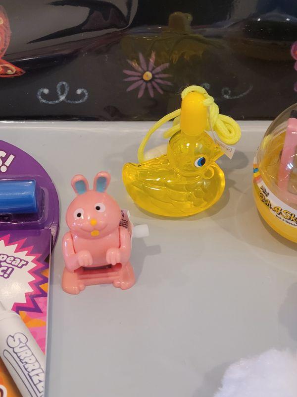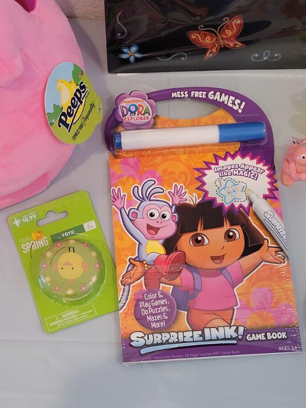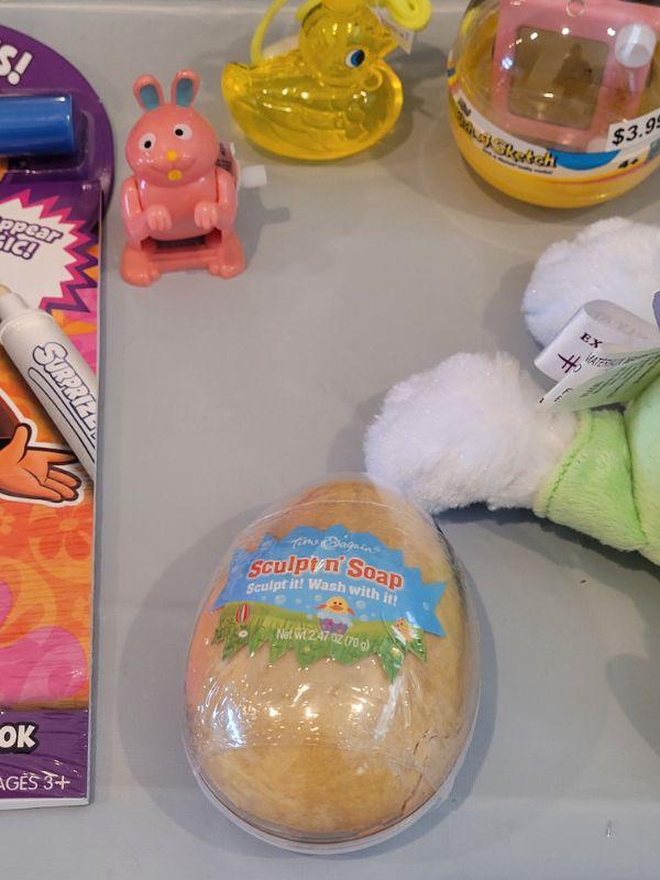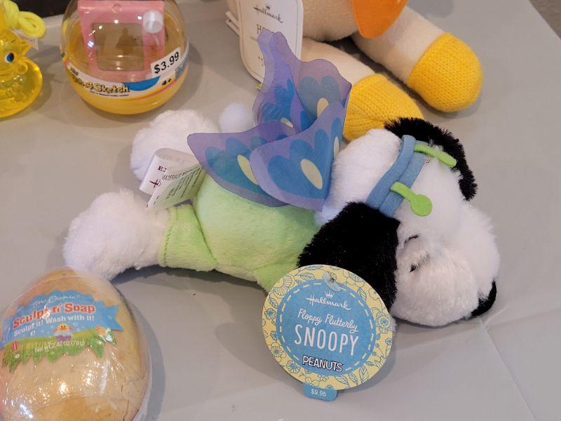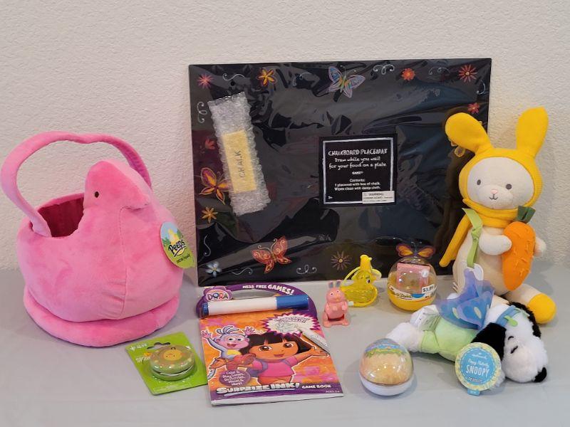 Lot 370: New Peeps Easter Bucket, Chalkboard Placemat, Activity Pad, YoYo, Sculpt n Soap, Bubbles, Flutterfly Snoopy and Hallmark Knit Bunny