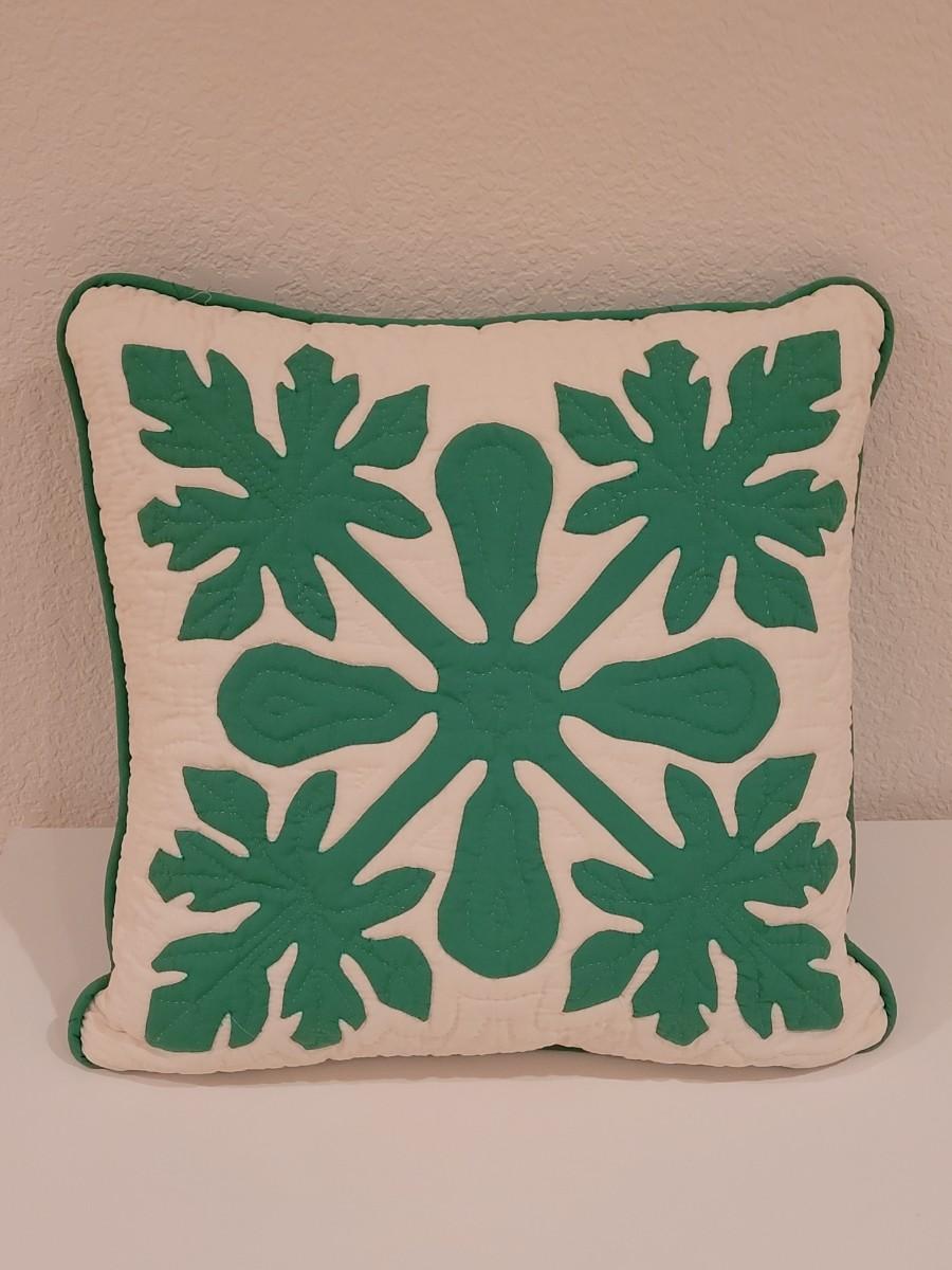 Lot 370: Hawaiian Green & White Quilted Pillow