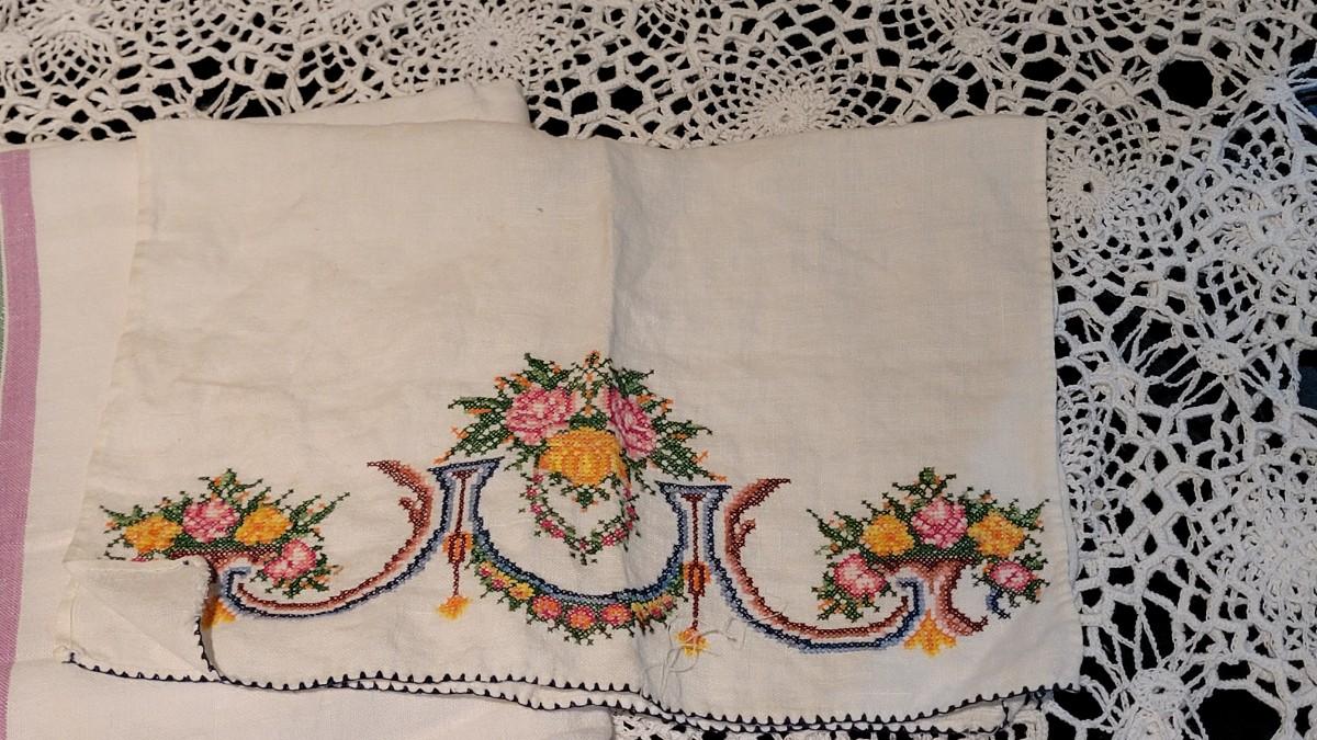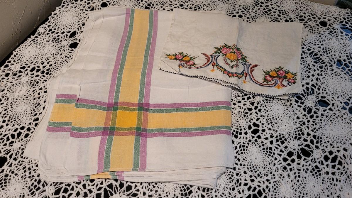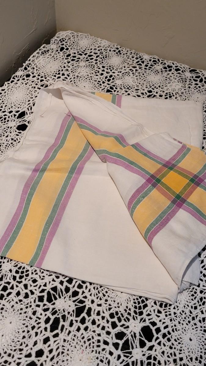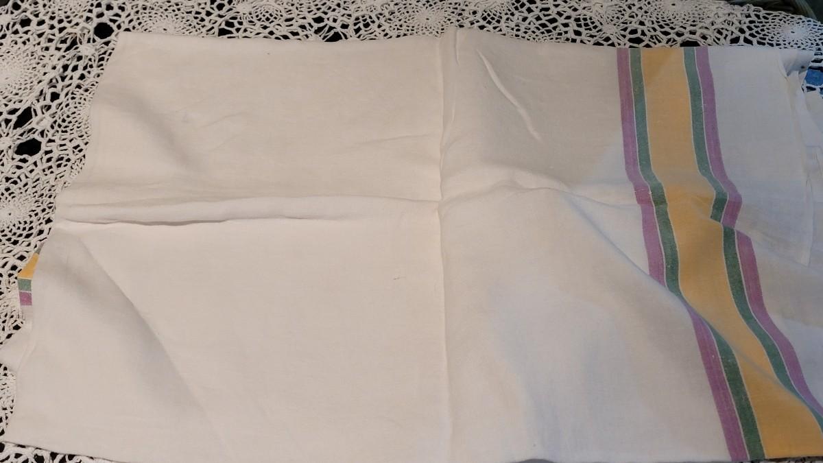 Lot 370: Vintage Striped Tablecloth and Handtowel