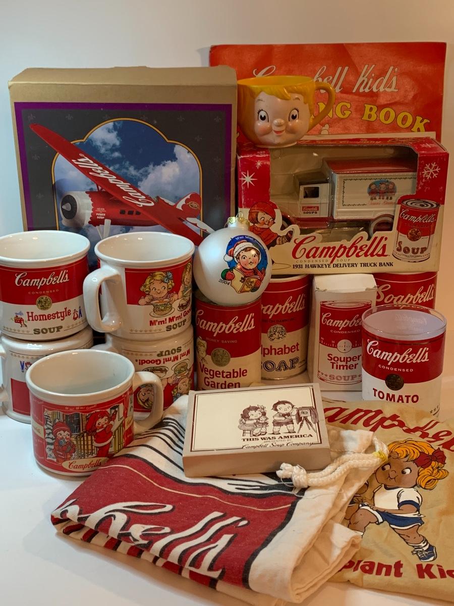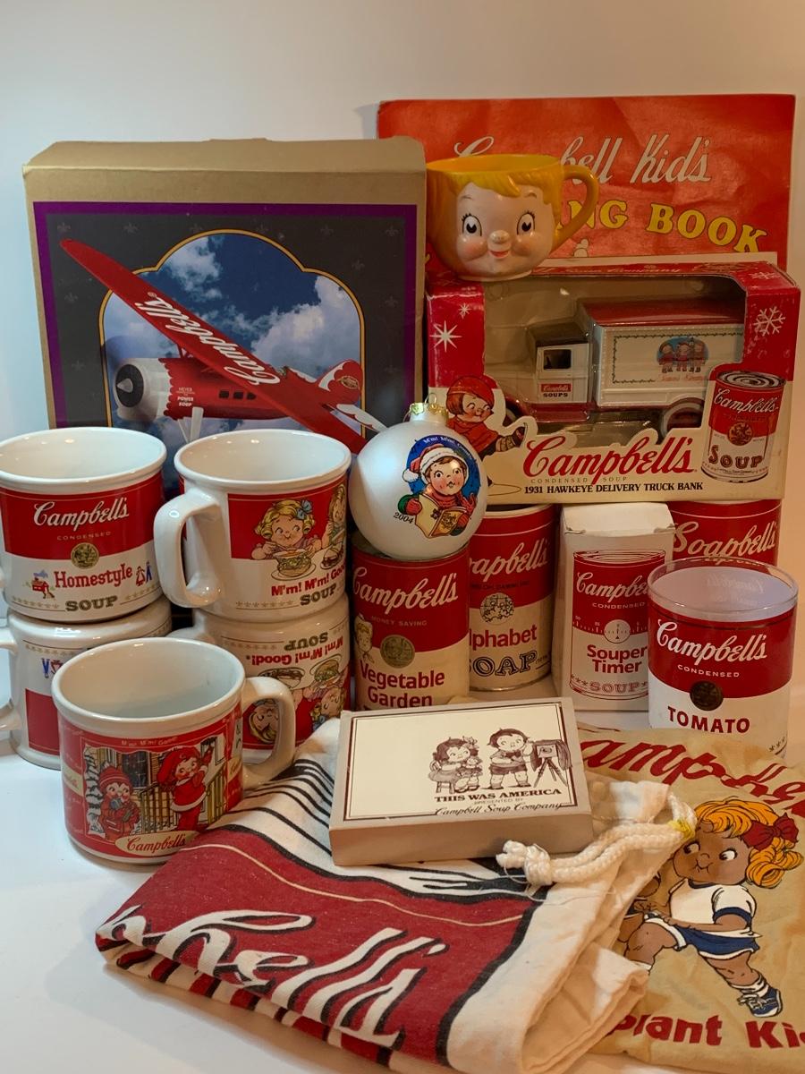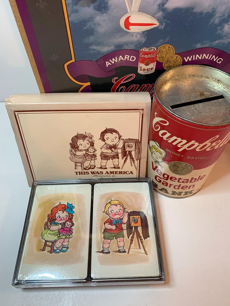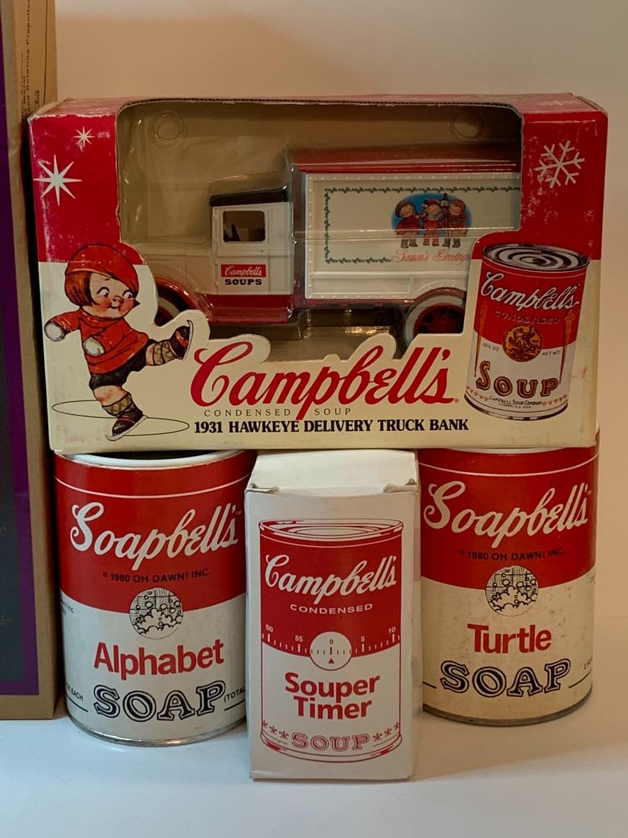 collectible Hawkeye Campbell's Delivery Truck, soup can timer, soup can bank, playing cards and much more in this Cambell's of Camden, NJ advertising lot.