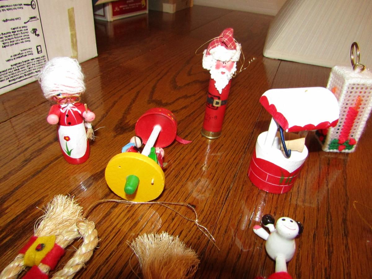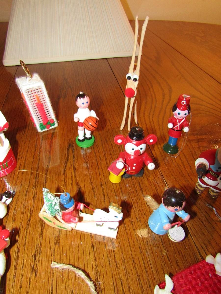 MOST OF THESE ORNAMENTS ARE MADE OF WOOD, SOME MAY BE MISSING A PIECE