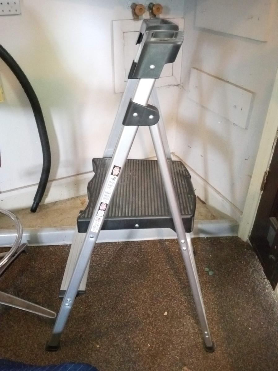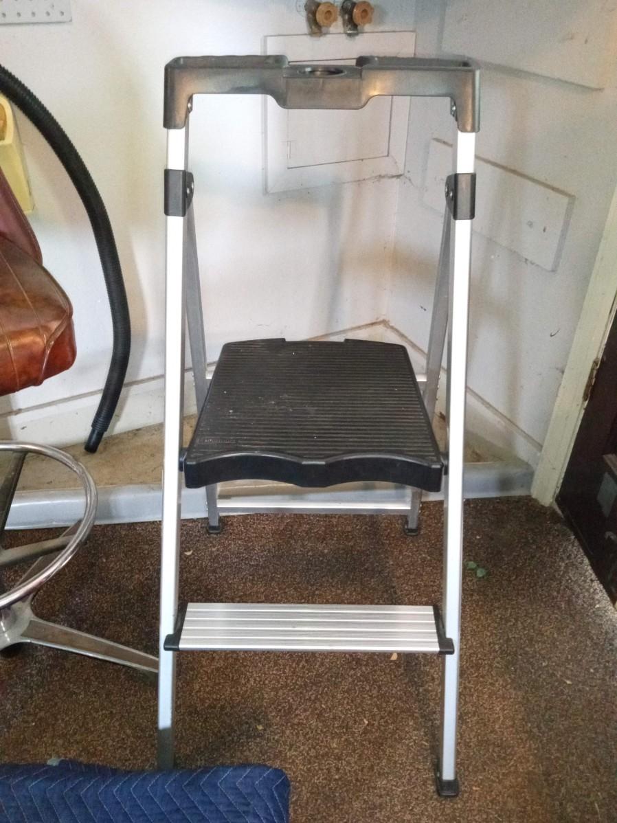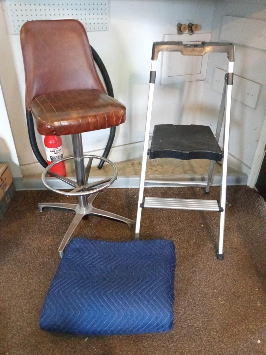 LOT 370 SWIVEL BAR STOOL, FOLDING STEP STOOL AND A MOVING BLANKET