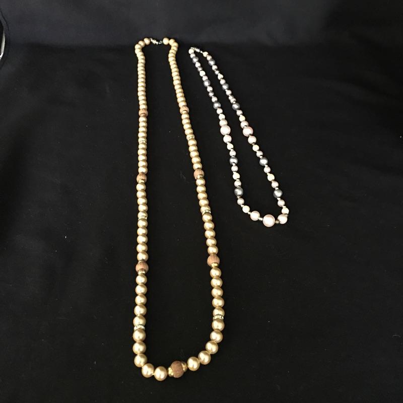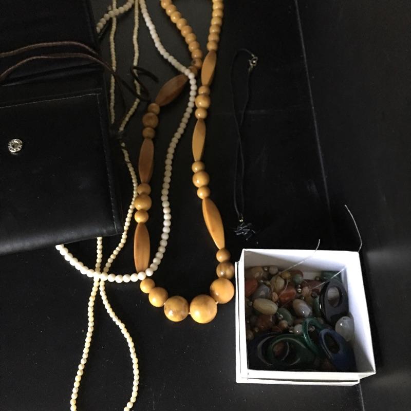 Large assortment of necklaces in many styles. Be ready for any occasion from casual to formal with this melange of necklaces. Last photo has beads and pieces from a broken necklace.