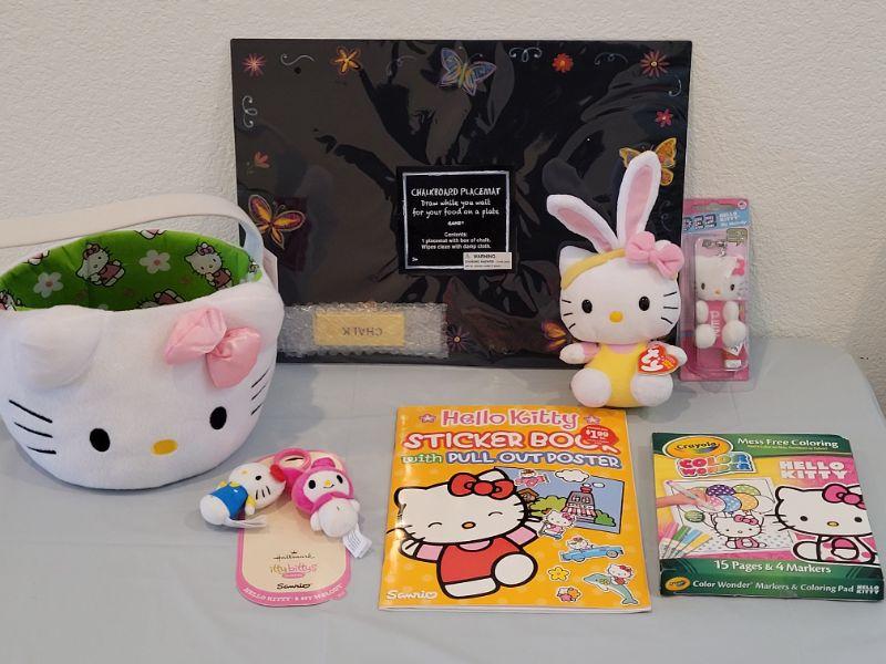 Lot 371: New HELLO KITTY Easter Bucket, Itty Bitty Clip On, Activity, Pez and Ty Beanie Baby