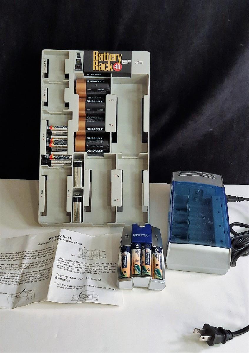 Lot 371 2 Battery Chargers Plus Battery Rack w/ Tester.