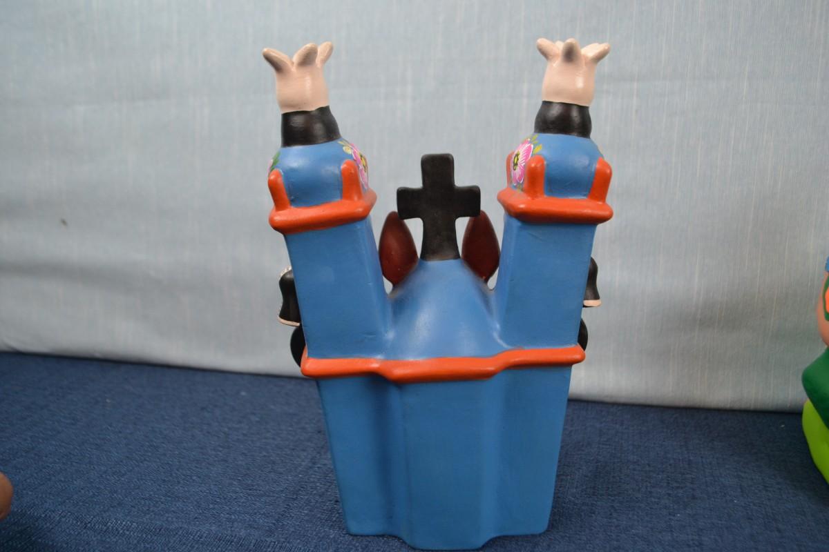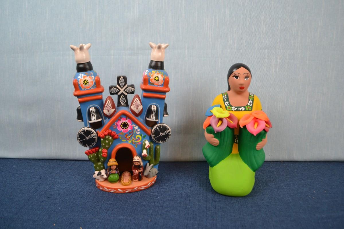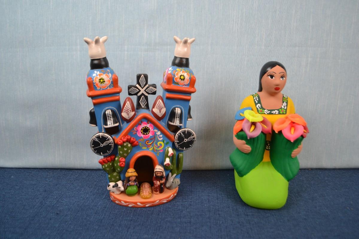 LOT 371  FOLK ART HAND PAINTED CLAY DIORAMA AND CLAY FIGURINE