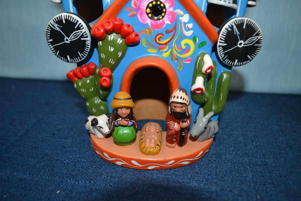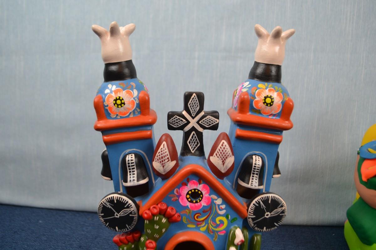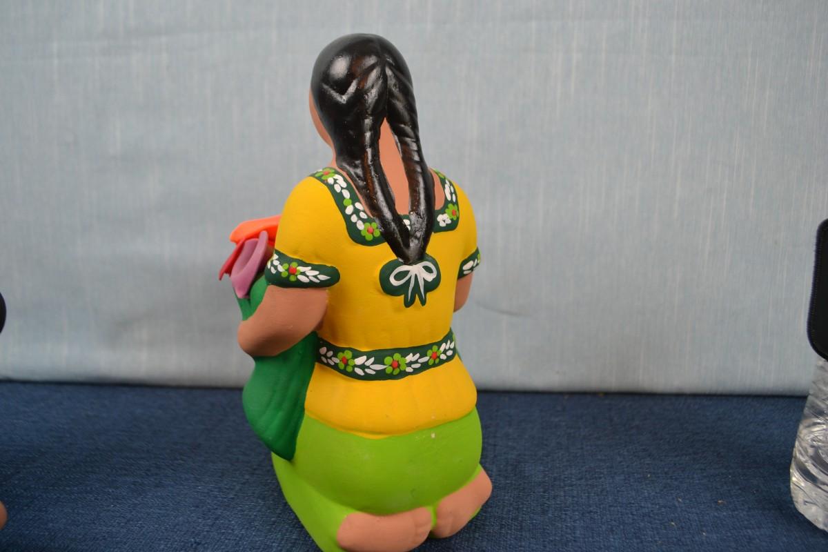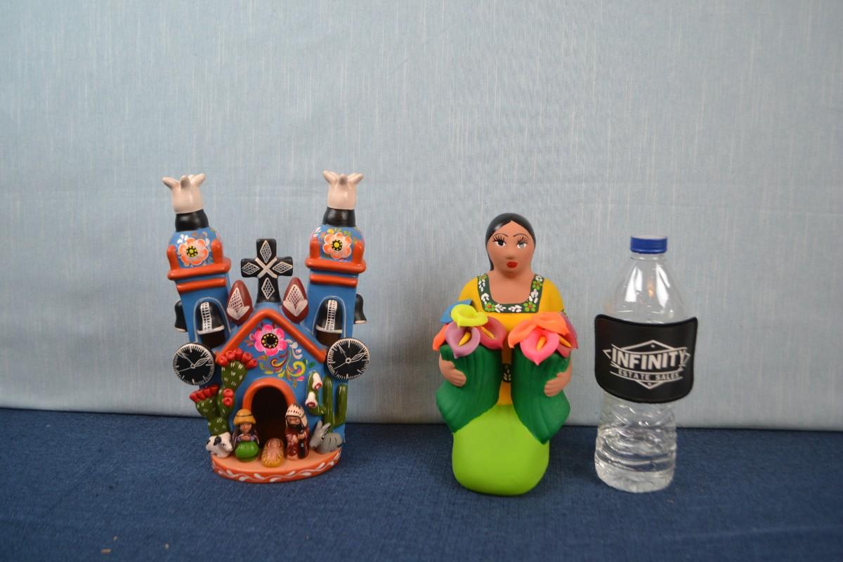 LOT 371  FOLK ART HAND PAINTED CLAY DIORAMA AND CLAY FIGURINE