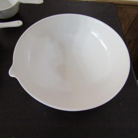 FROM THE LITTLE BIT OF RESEARCH DONE, IT LOOKS LIKE THESE ARE COORS LABWARE. ALL 4 PIECES ARE IN GREAT SHAPE