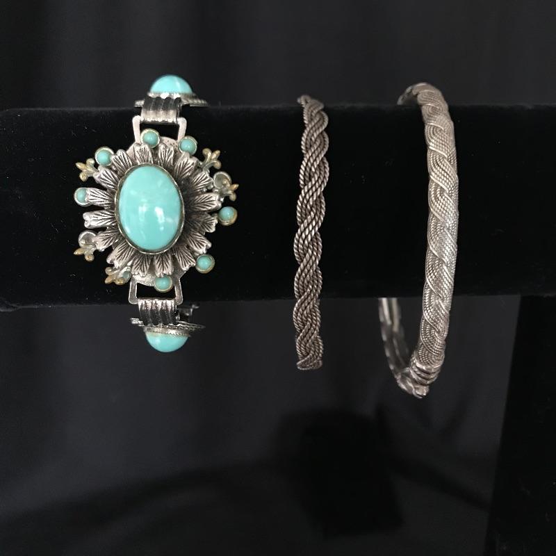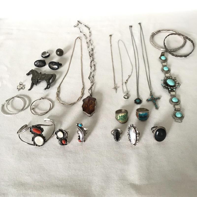 Fill your jewelry box to the top with this stunning collection of statement Pieces from sterling cuff links and pendants to vibrant stones, broach and gorgeous rings. Some pieces have markings noted in photos. See images for ring sizes.