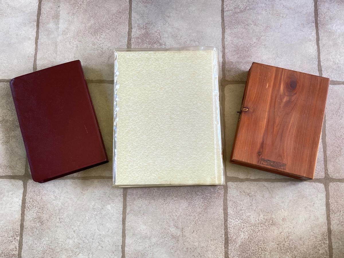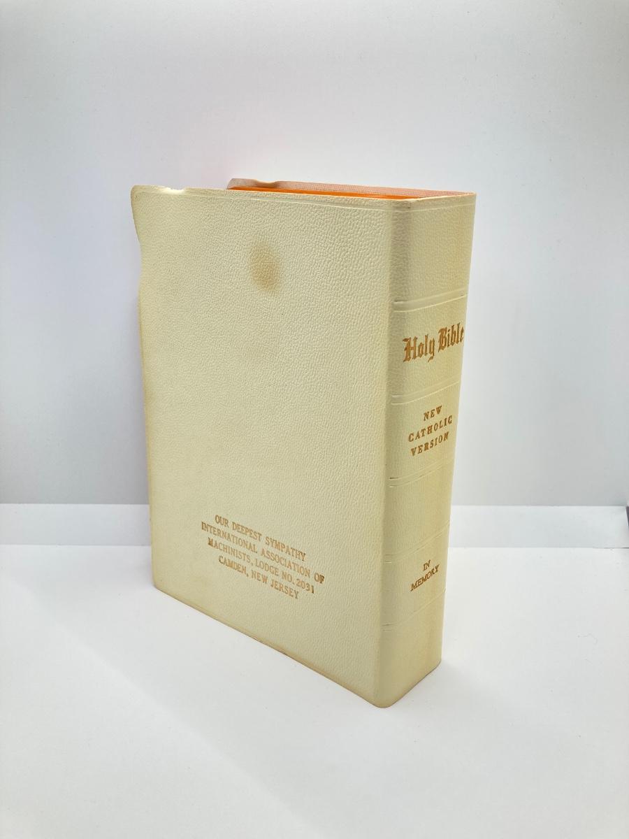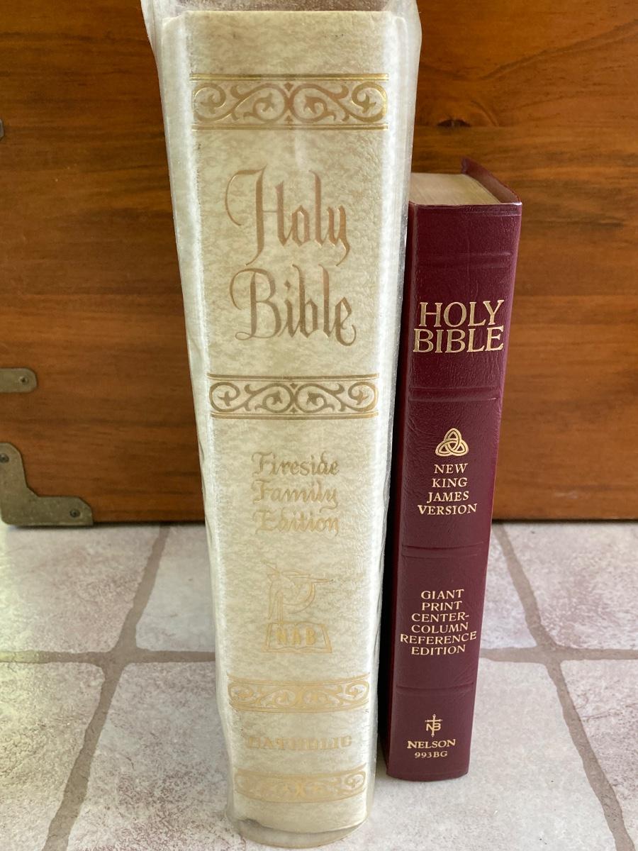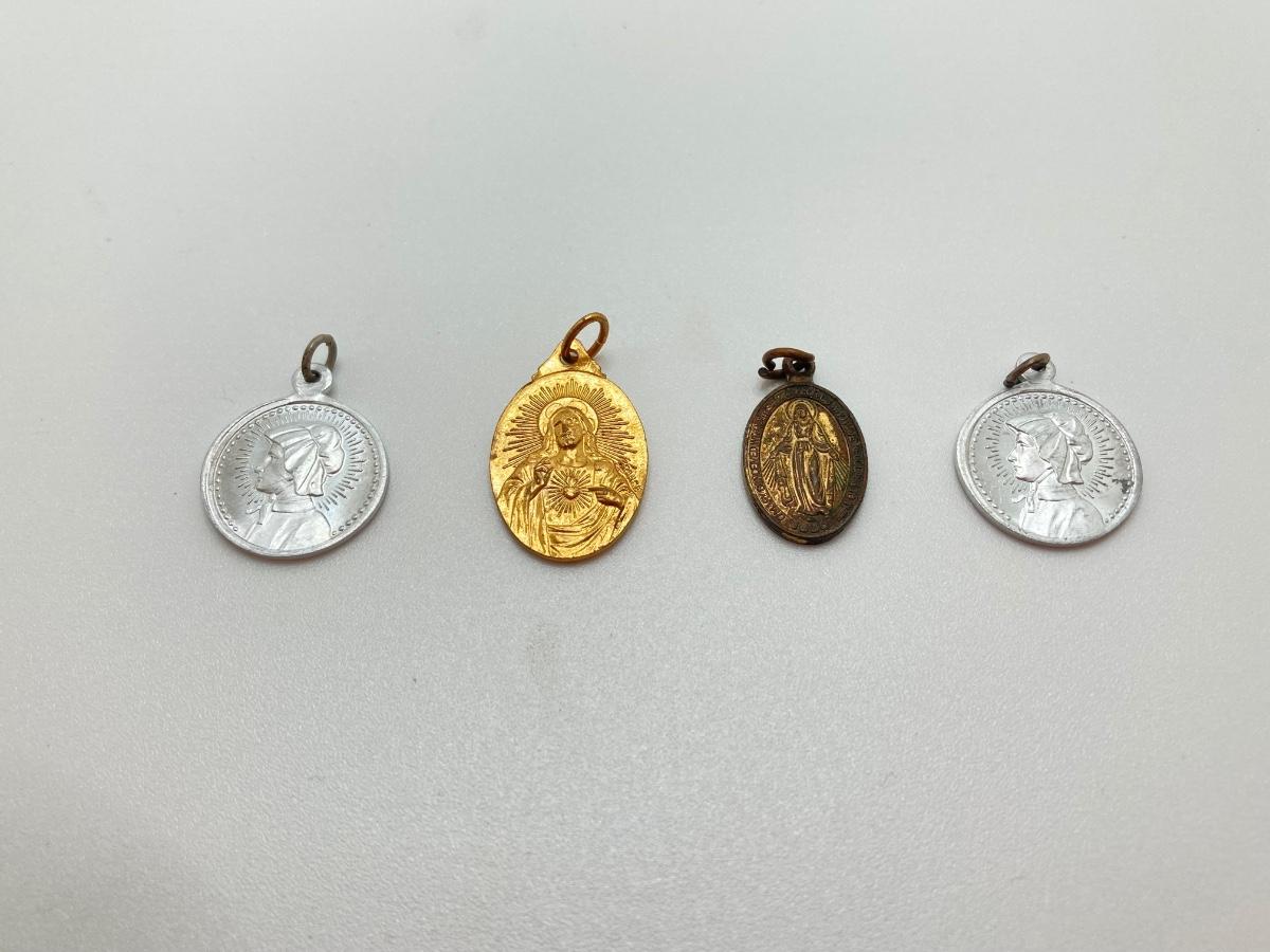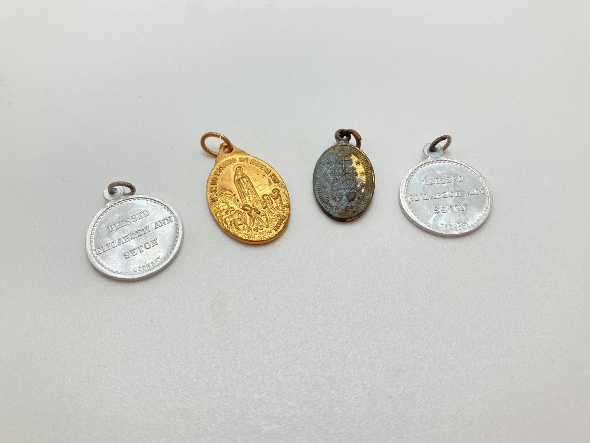 LOT 372: Vintage Religious Collection - Bibles, Medals and Small Statue