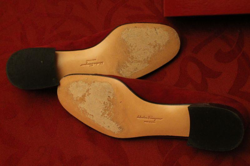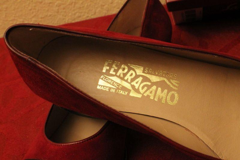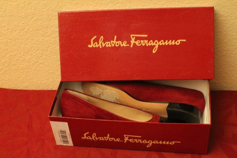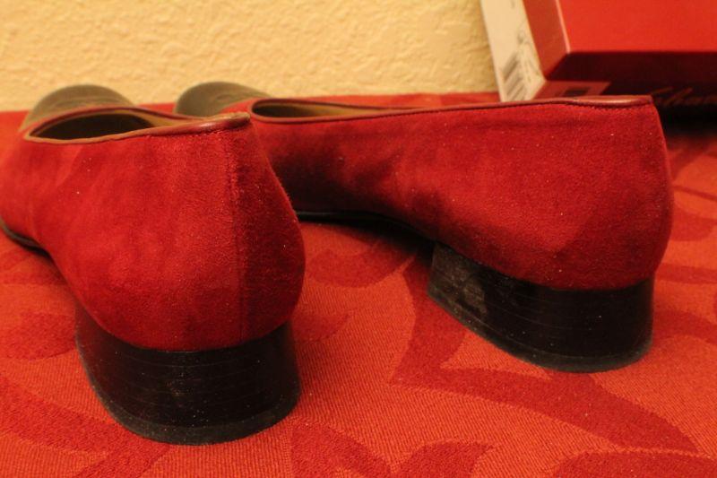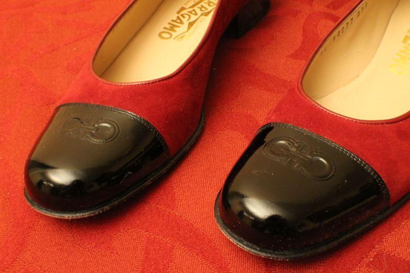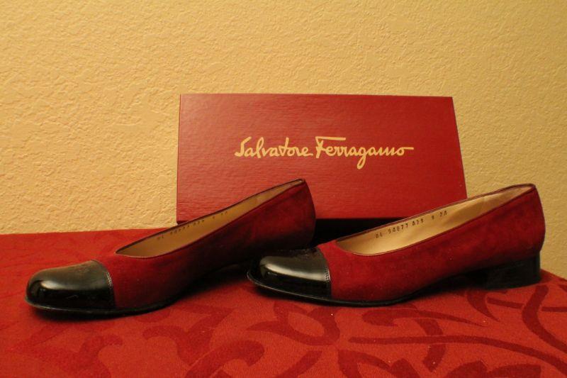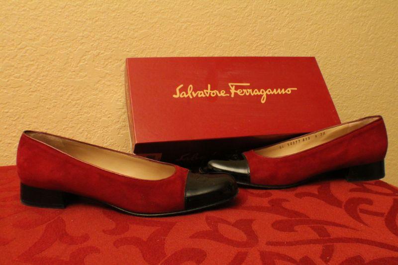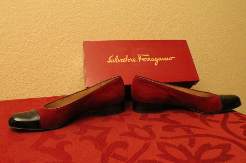 LOT #372: Salvatore Ferragamoâ„¢ AGILE 2cm Heel Suede Red and Black Shoes SIZE 9 AA