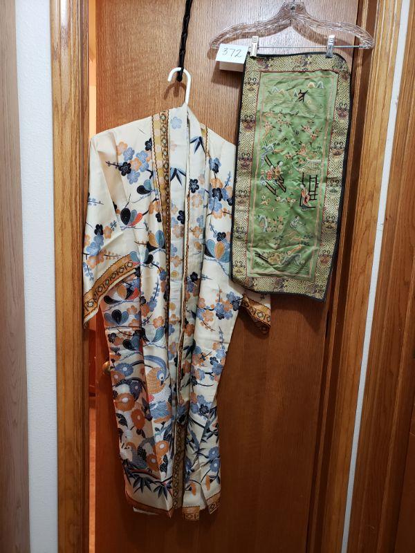 Lot 372: Vintage Japanese Kimono & Small Silk Piece